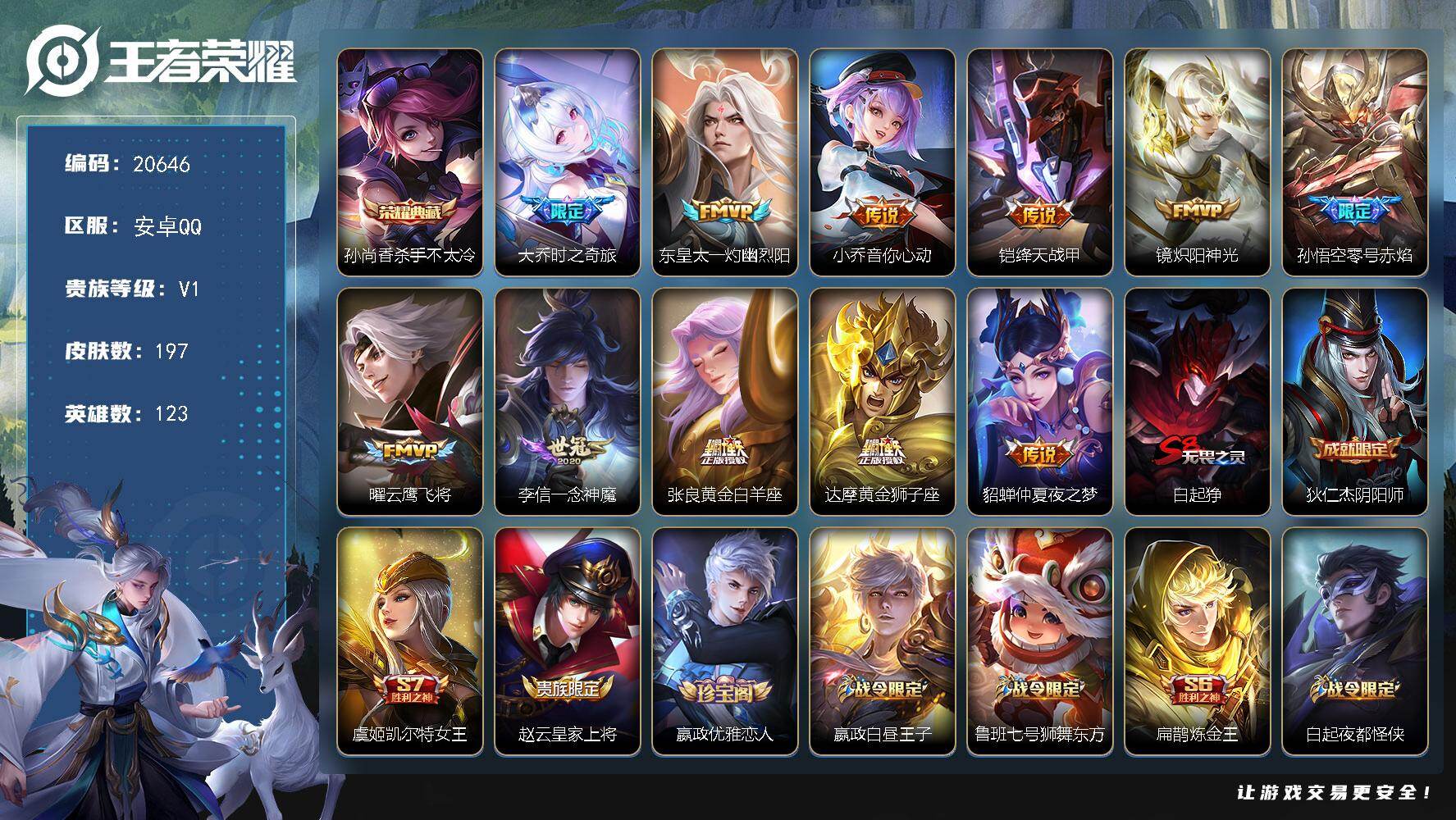可二次【7传说1金标264皮肤1星元可秒换绑】安卓QQ-1