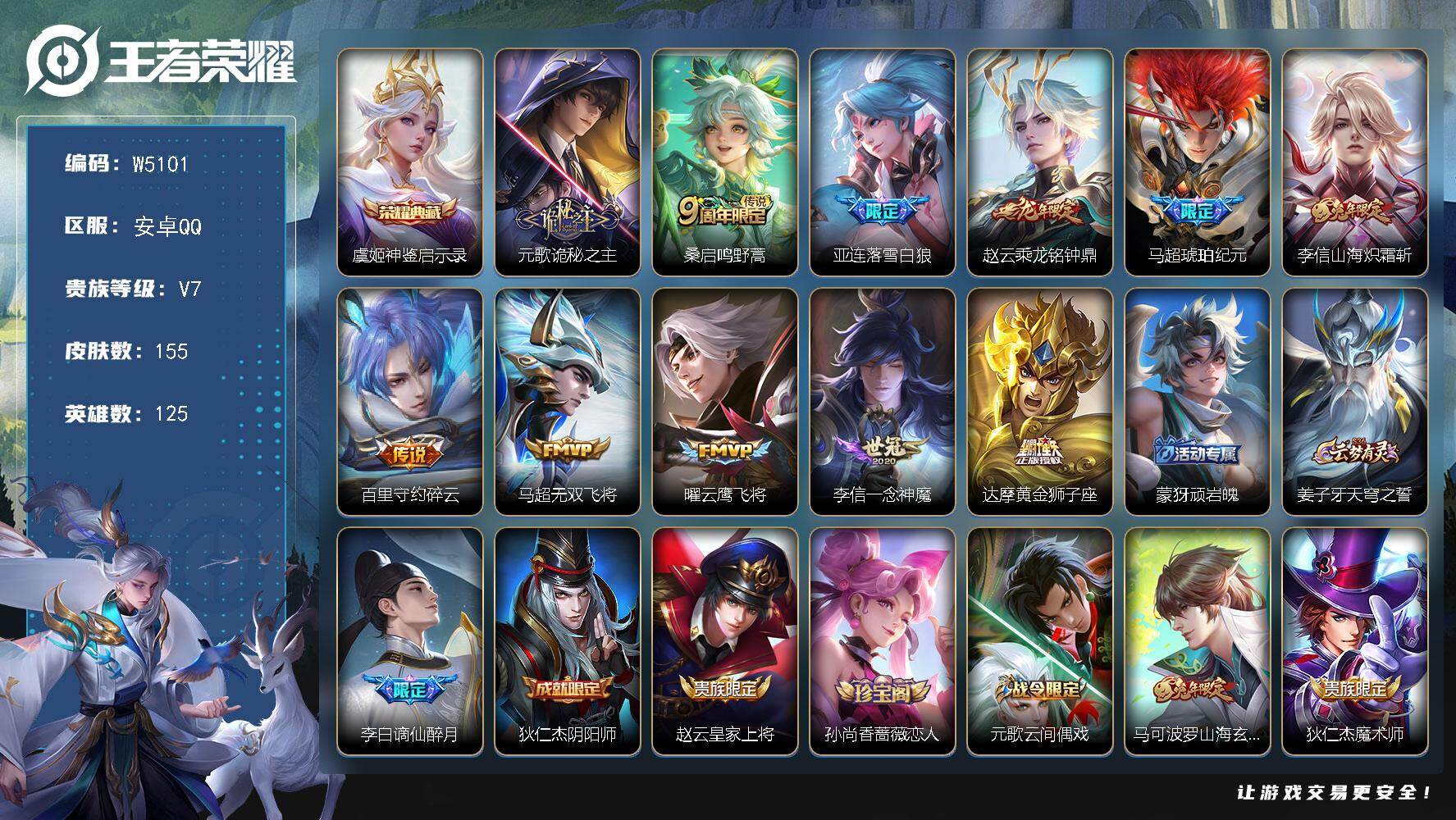 皮肤223 英雄124 至尊星耀 荣耀典藏1 传说6 其他皮肤97-【223皮 v7 6传说 李白典藏 镜传说 猴子地狱火 野王号】:安卓Q-v7