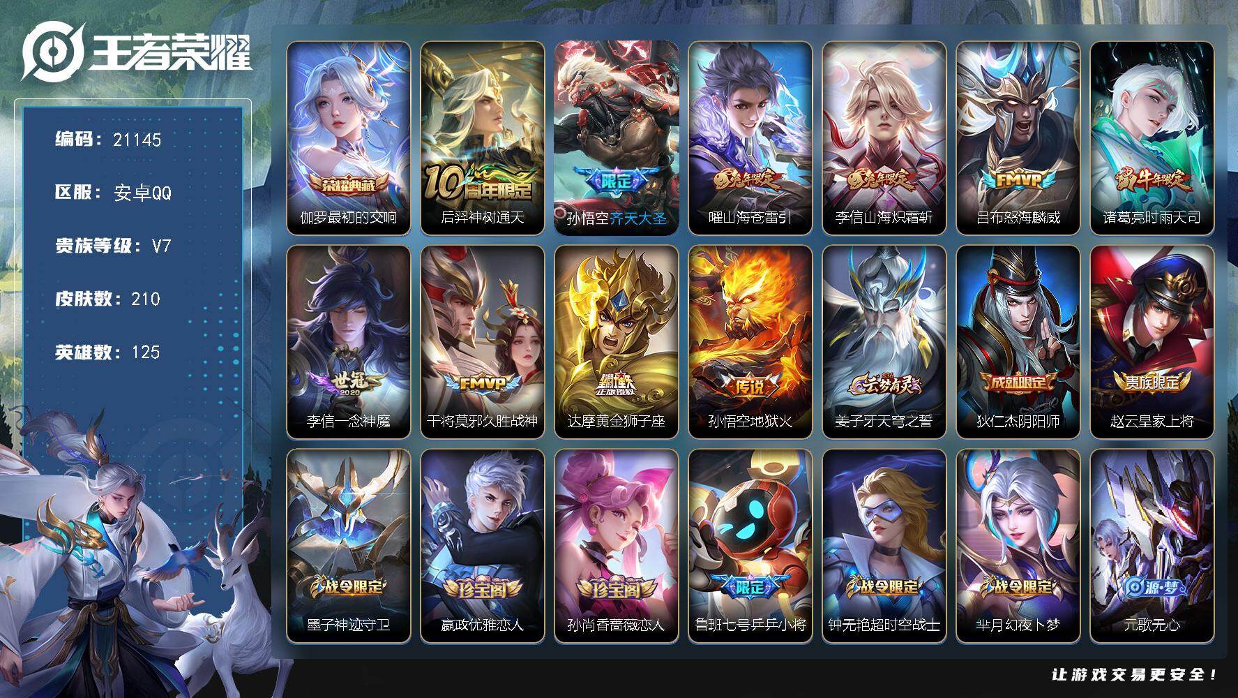 安卓QQ-7传说-154皮肤-125英雄-永恒钻石