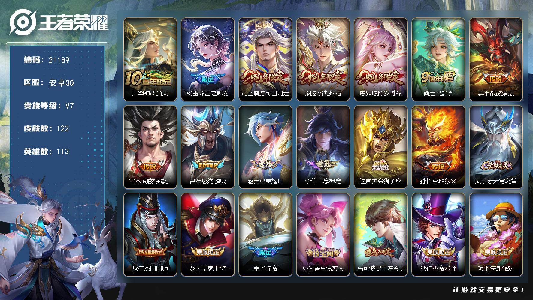 安卓Q区-无二次-贵7-127英雄-151皮肤-4传说-31史诗-44限定-1星元