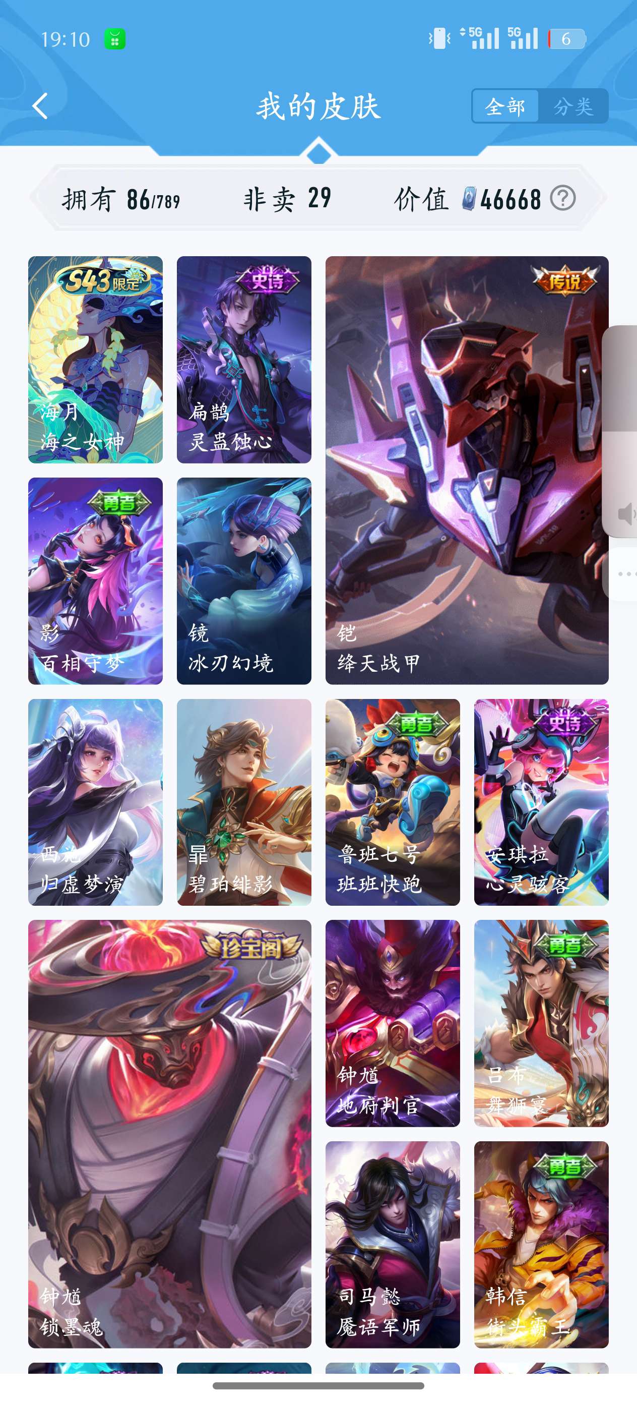 V5 皮肤27 英雄44 最强王者 传说3 其他皮肤26