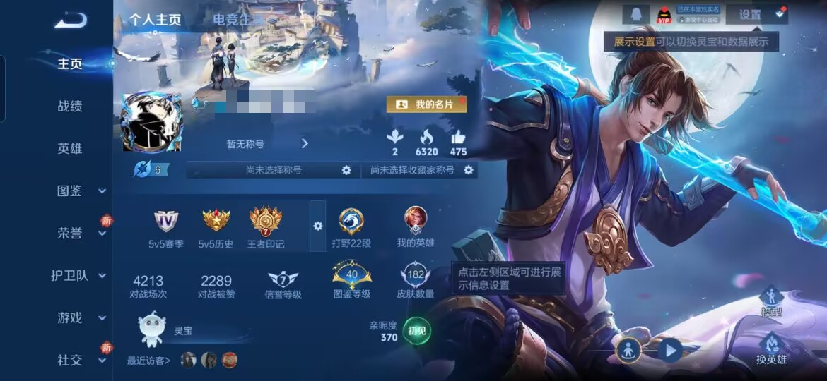 贵族等级: V6 英雄数: 124 皮肤数: 188 传说皮: 地狱之眼,琥珀