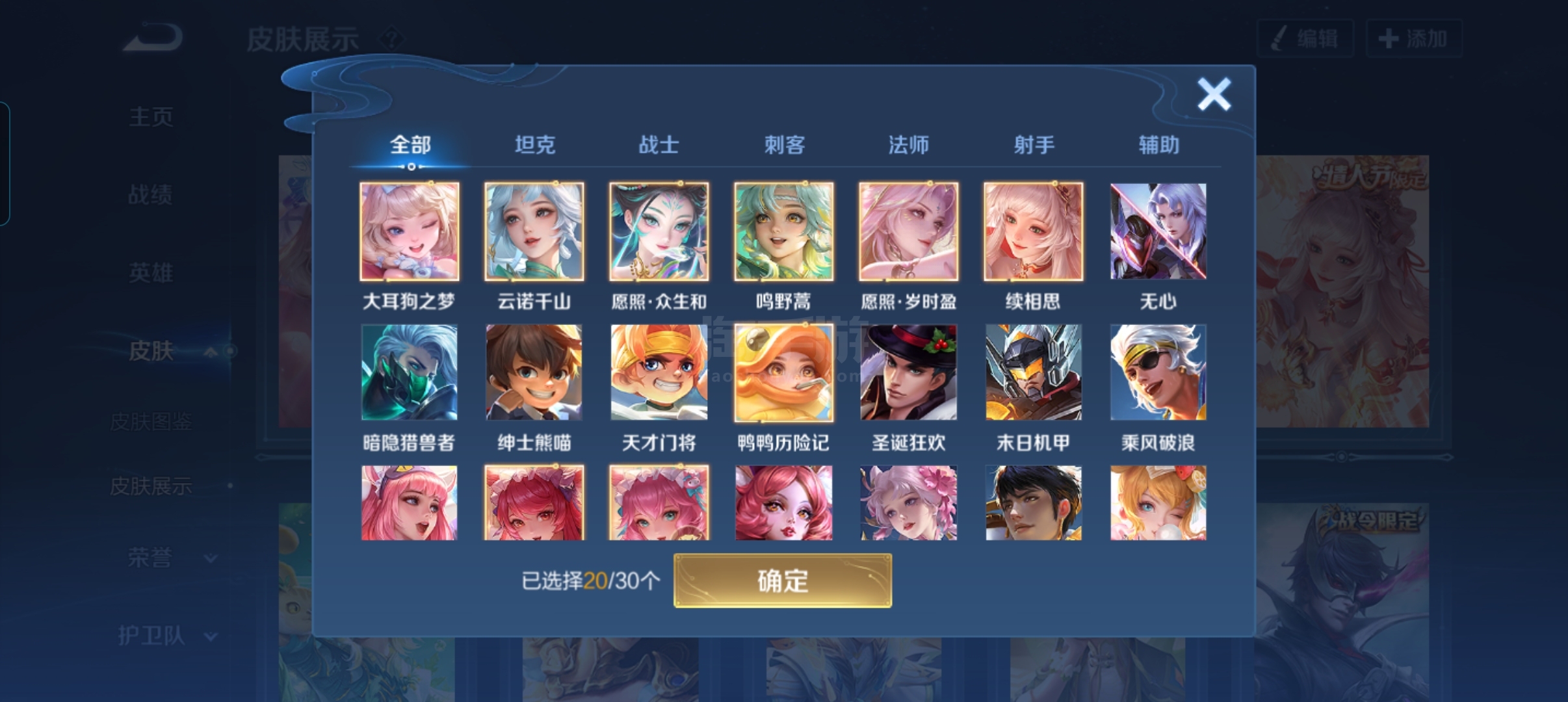 传说8 史诗54 限定71 英雄127 皮肤221 稀