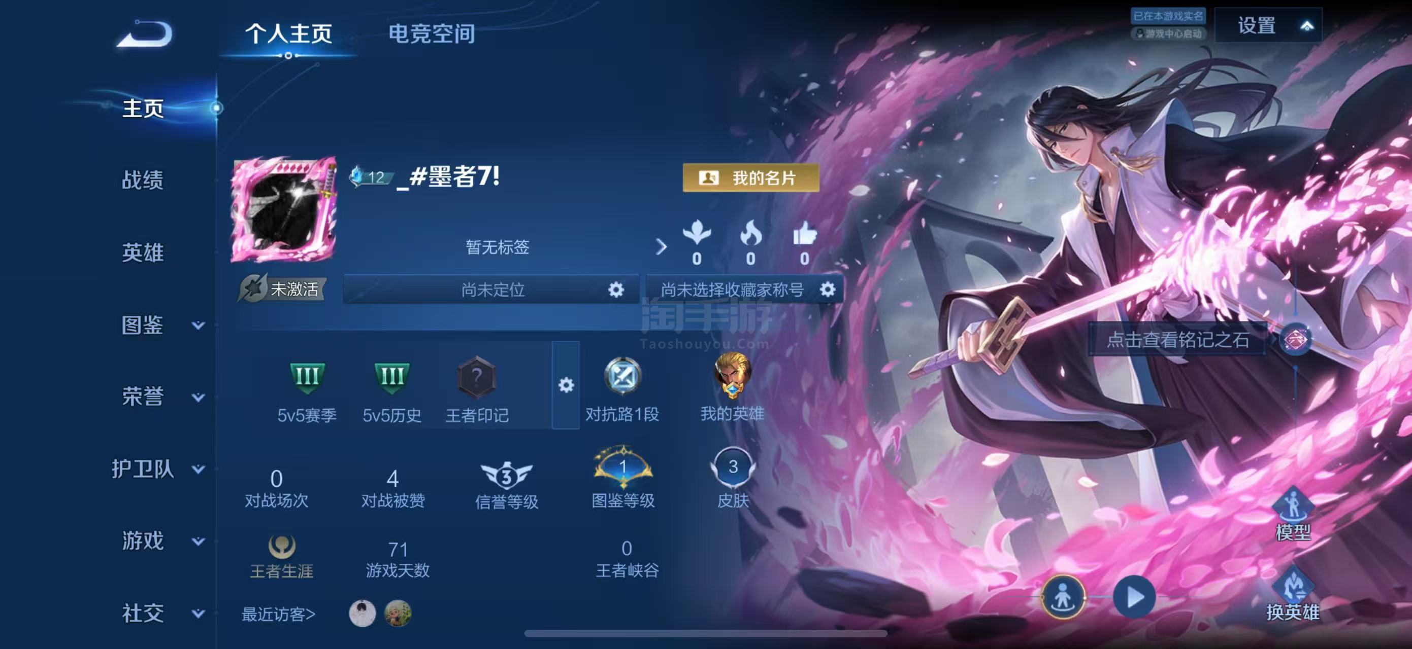 暃珍品传说 巧木白哉 满级铭文 0场次 零排位