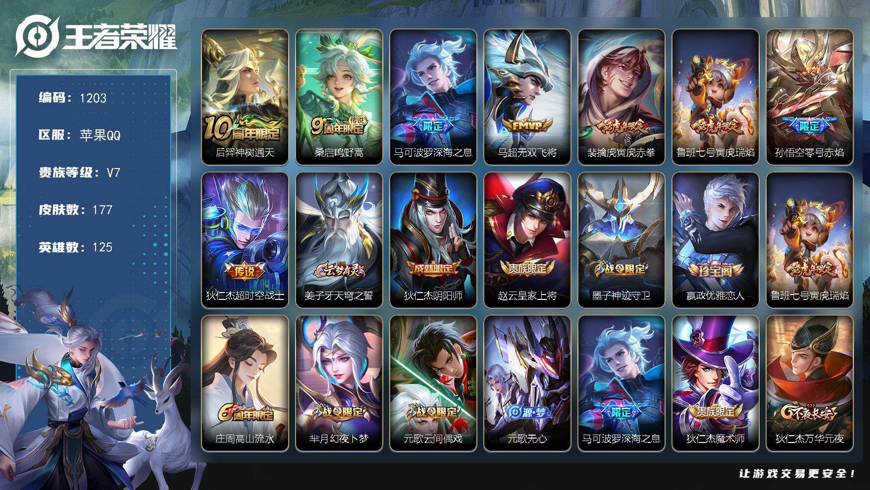 苹果Q-V7-125英雄-177皮-8传说-62史诗【传说】后羿神树通天,桑