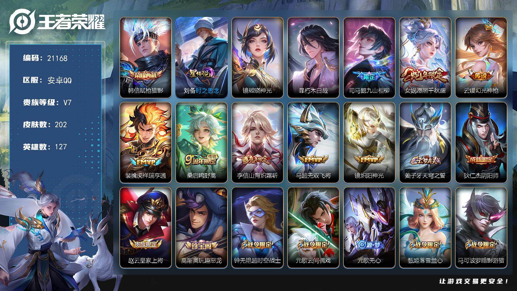 HXX1642【88皮肤8传说26史诗22限定 至尊宝 神