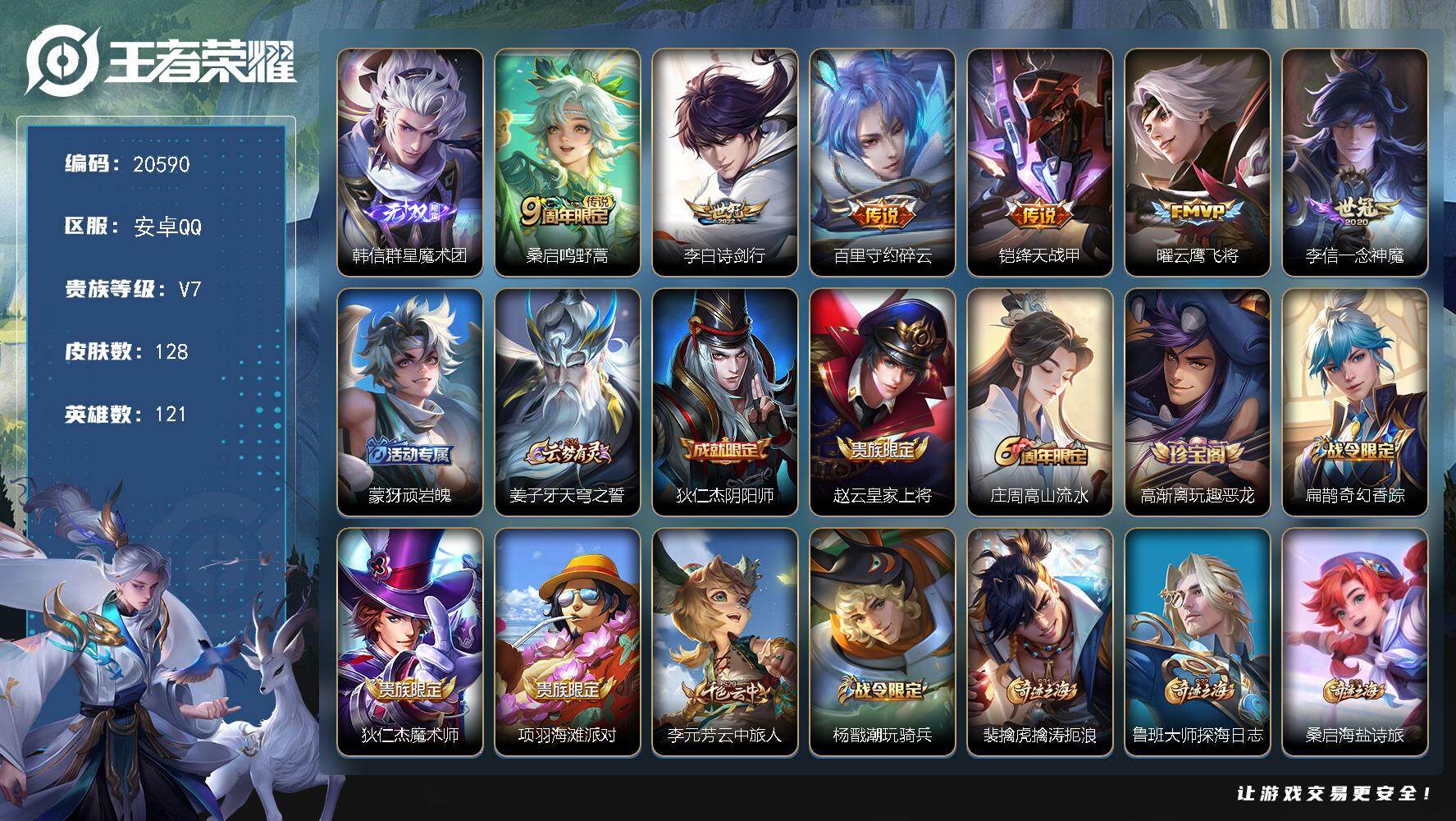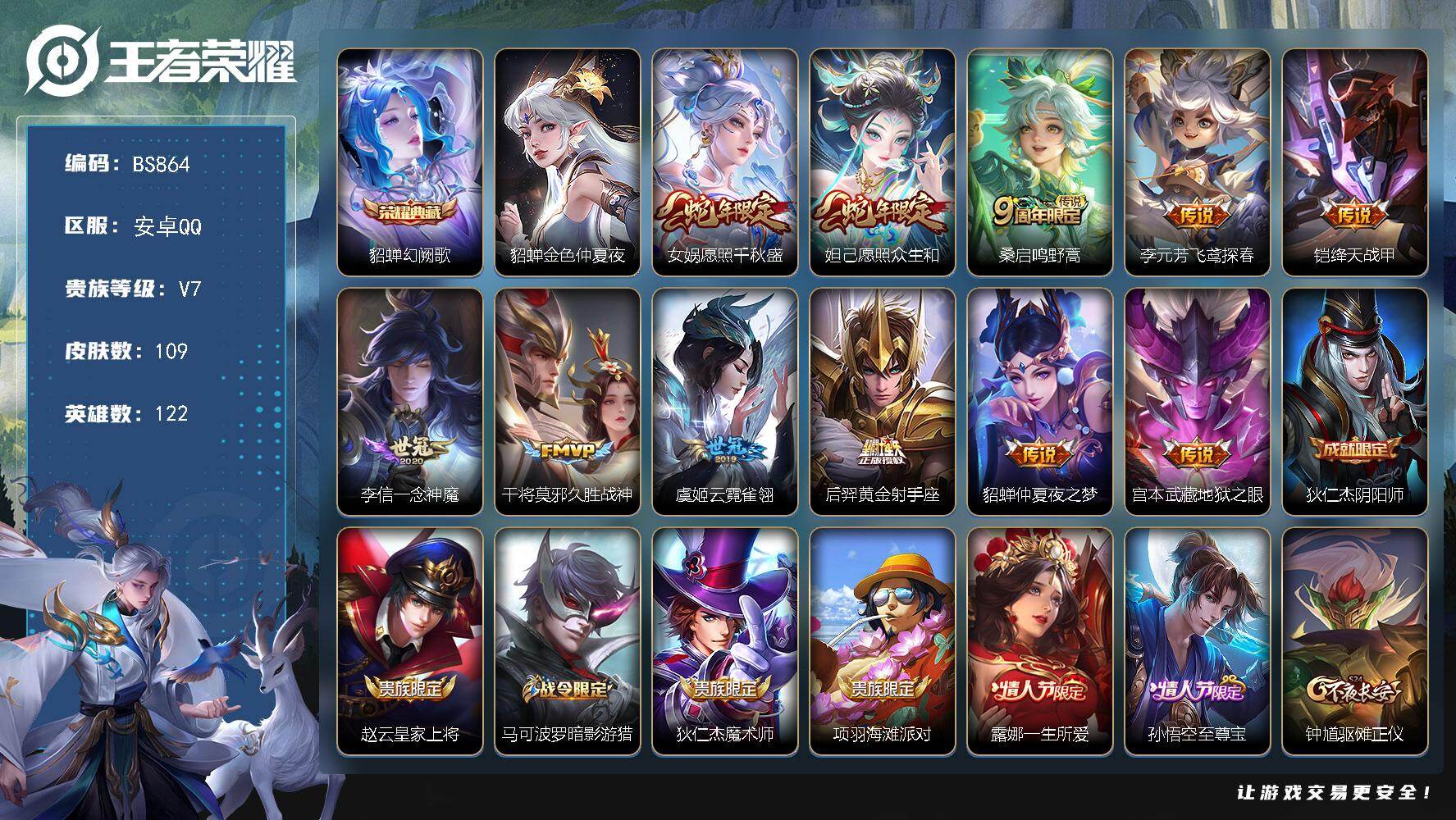 海月市标 虞姬市标 安卓Q-V7-最强王者段位-122英雄-109皮肤-1典藏
