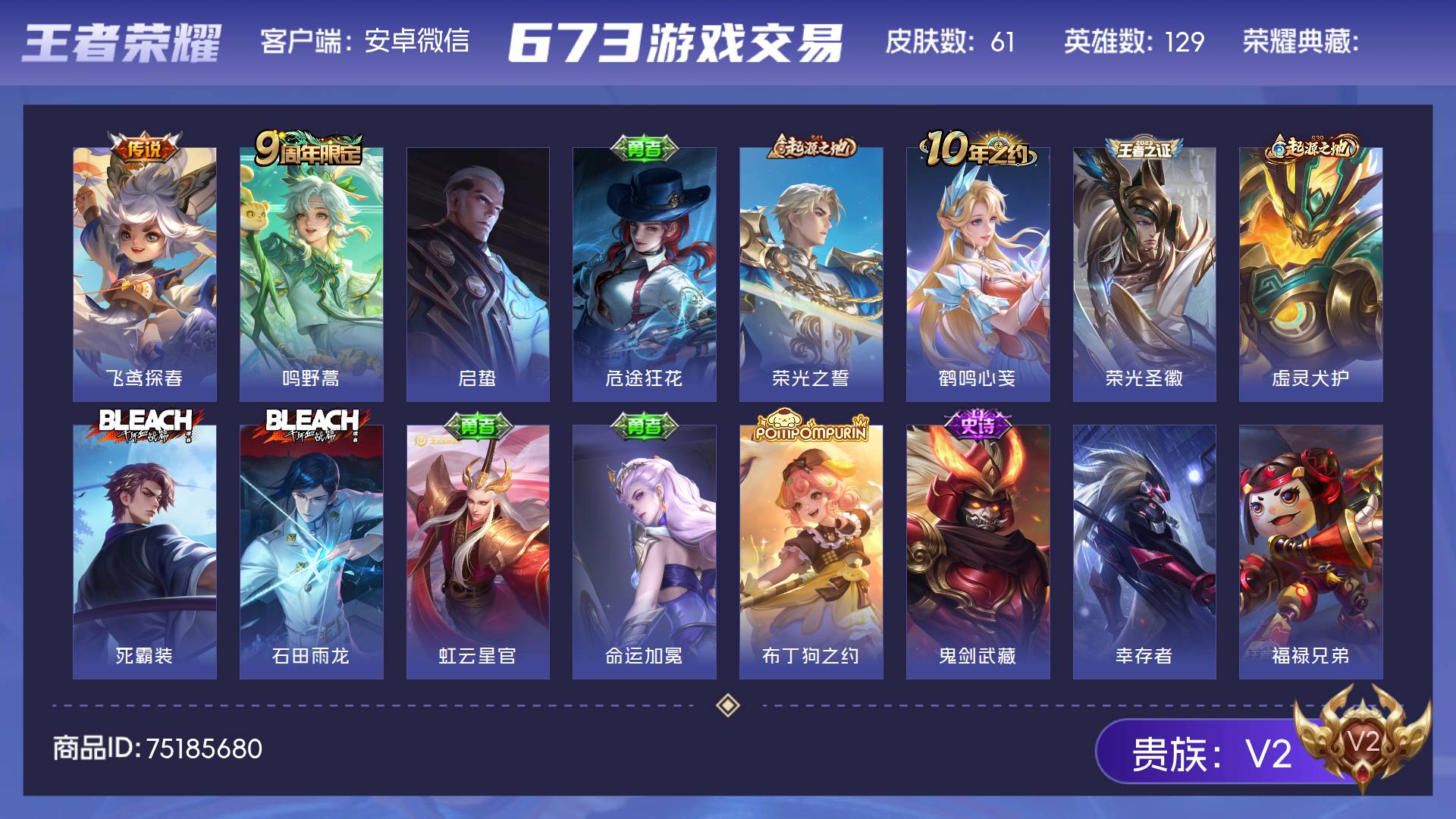 V2 皮肤61 英雄129 尊贵铂金 传说2 其他皮肤65