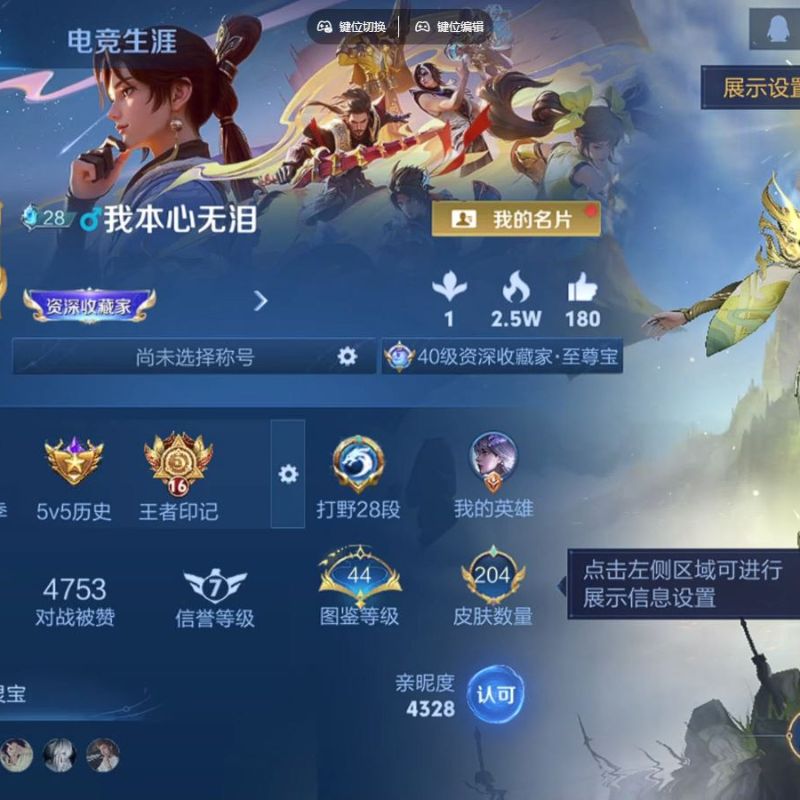 典藏1传说4史诗43 英雄120 皮肤166 贵族7级
