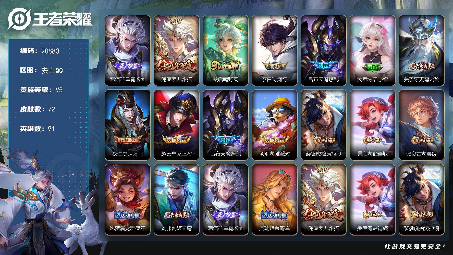 安卓Q-V0-尊贵铂金II段位-123英雄-205皮肤-1典藏皮肤-3传说-5