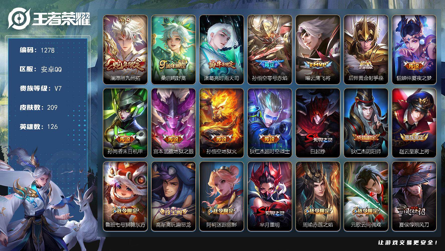安卓QQ 皮肤206 英雄126 典藏1 传说6 其他皮肤75 至尊星耀-