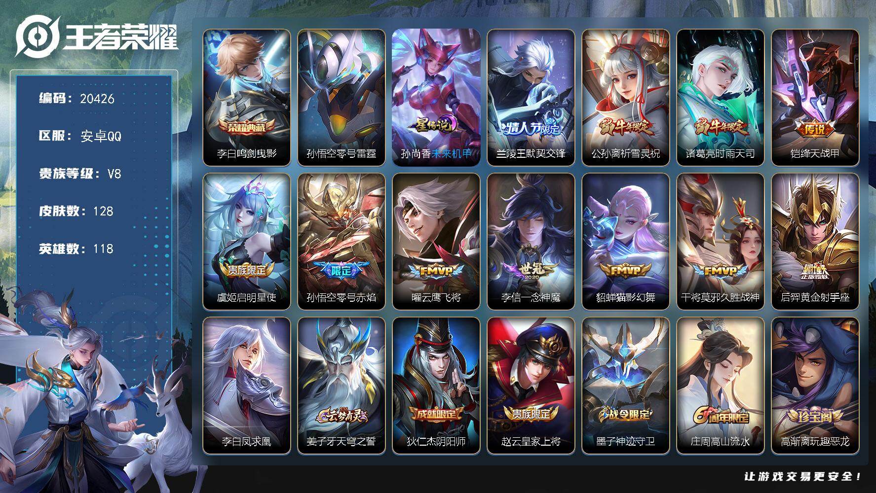 【金标孙悟空 金标典韦】贵族等级: V7 英雄数: 120 皮肤数: 178