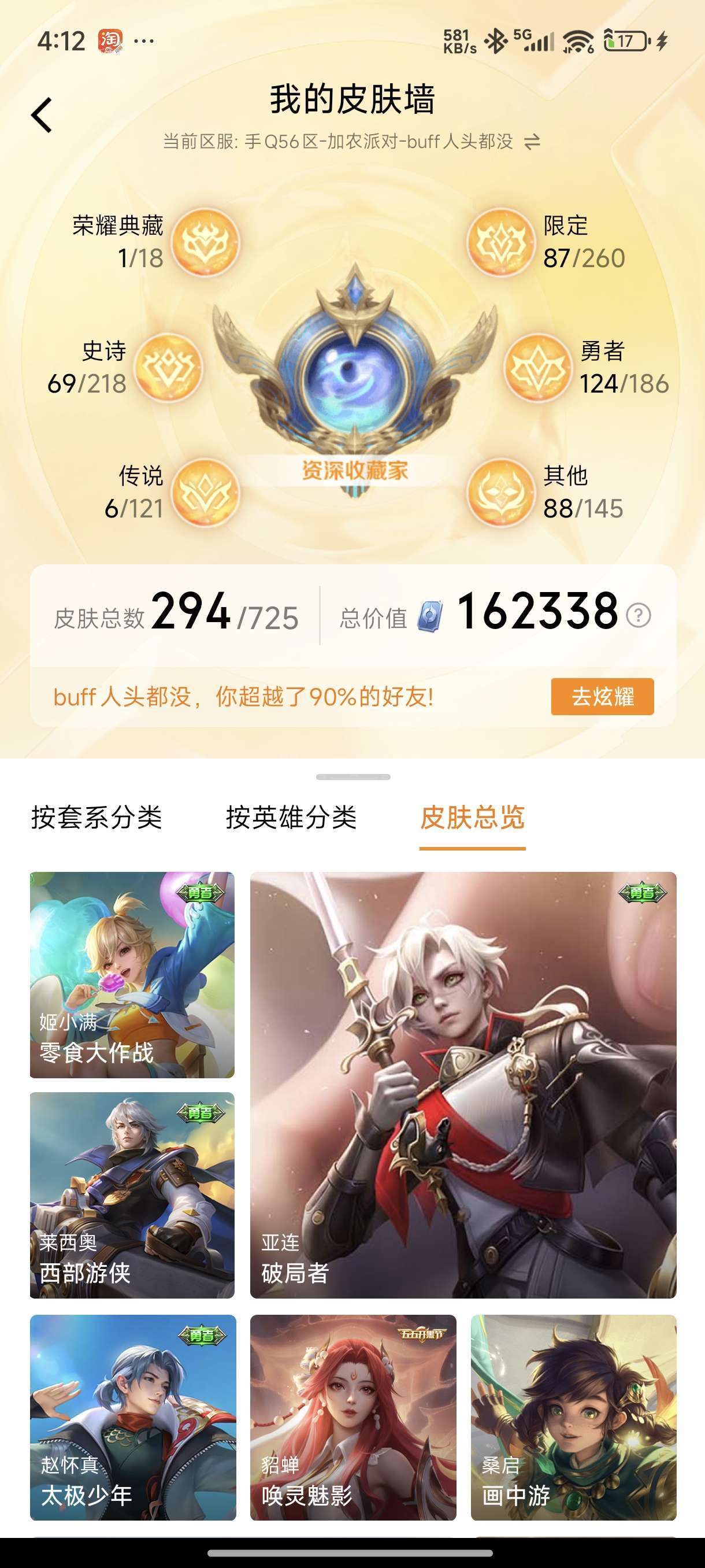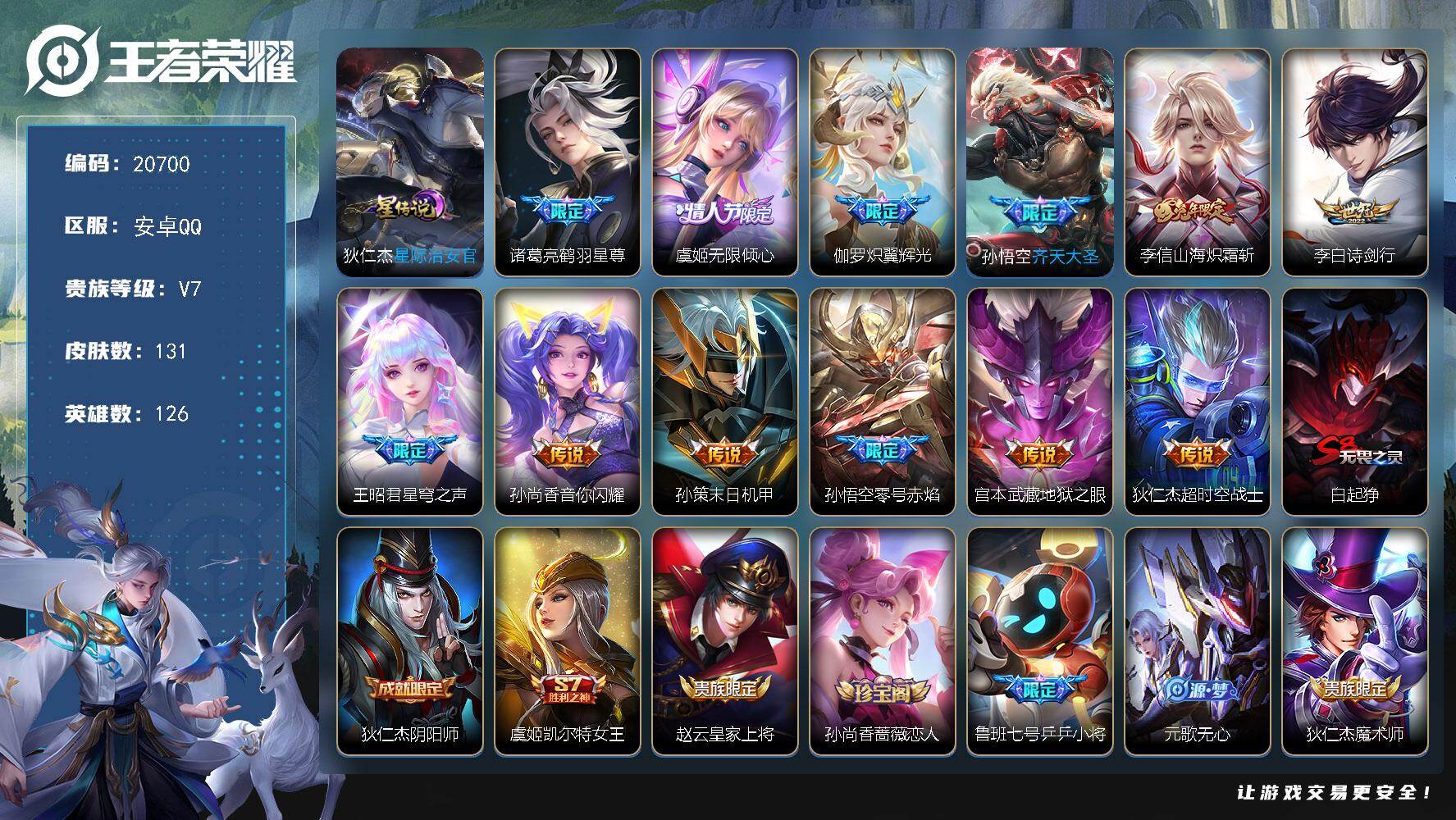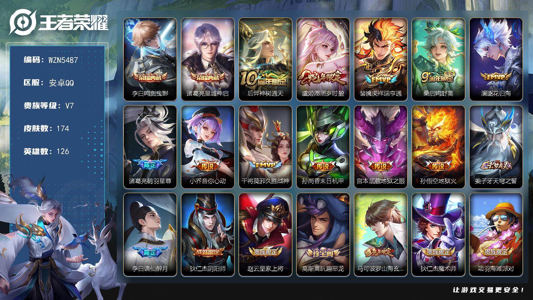 安卓QQ-2典藏-11传说-174皮肤-126英雄-至圣王者-