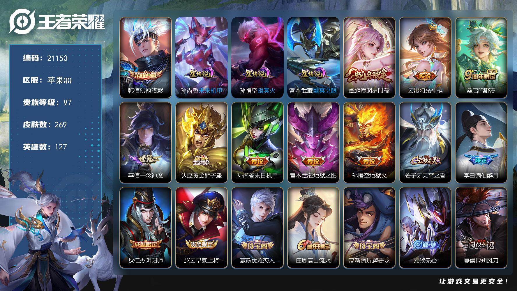 可二次【199皮肤1水晶9传说可秒换绑】安卓QQ-126英