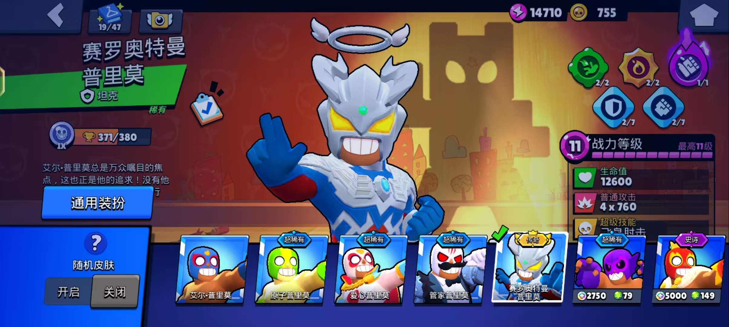 荒野王者和平至臻皮3个,传奇3个英雄51个,杯数6600。还有和平王者中等号王者者末日机甲等