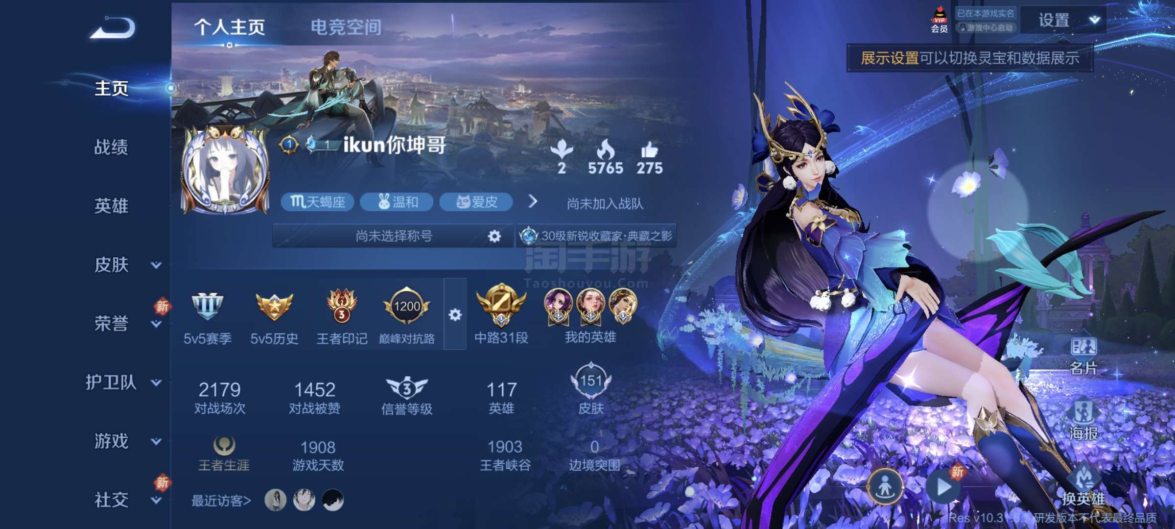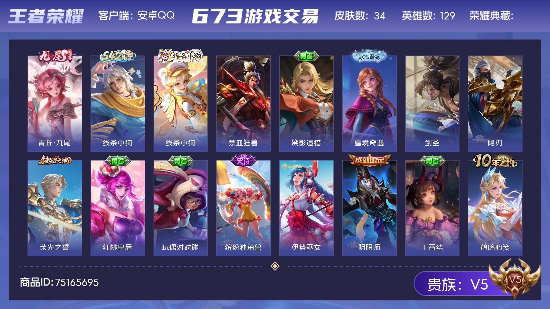 V5 皮肤34 英雄129 至尊星耀 无双皮肤1 其他皮肤38