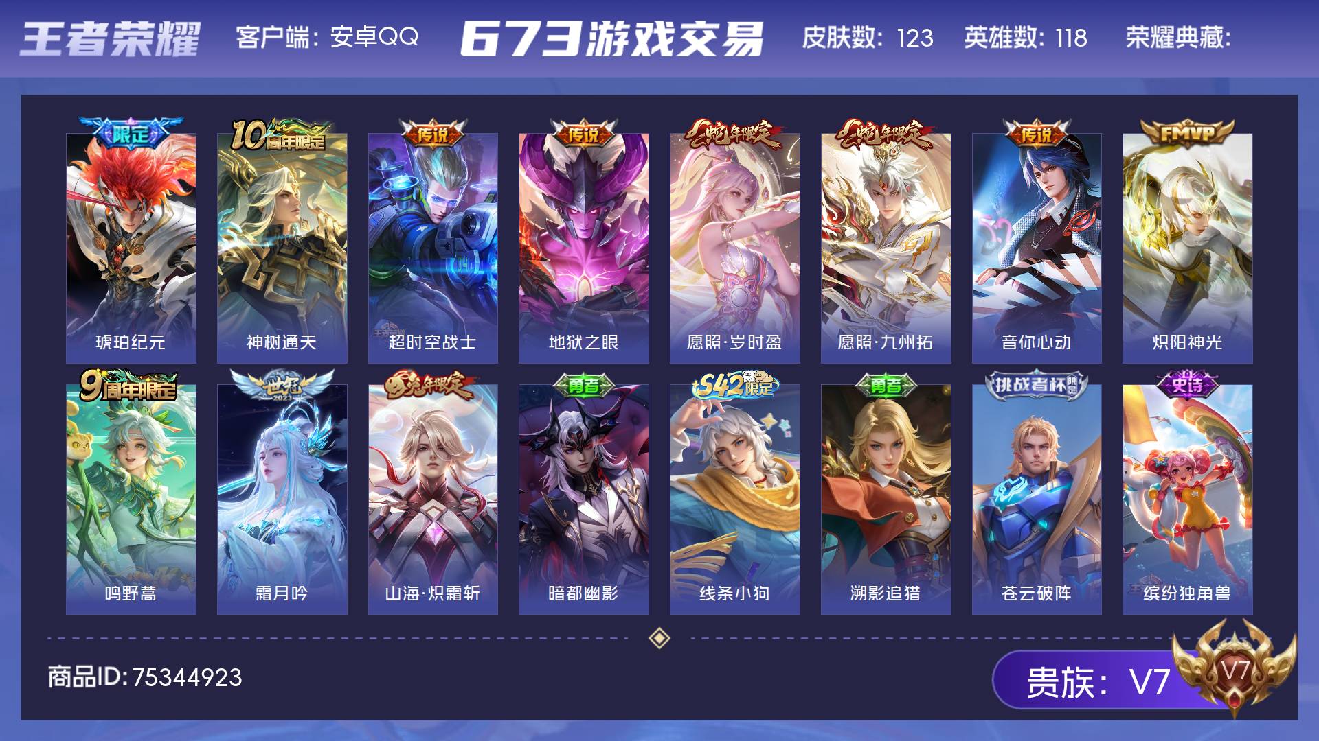 V7 皮肤123 英雄118 至尊星耀 星传说1 传说11 其他皮肤118