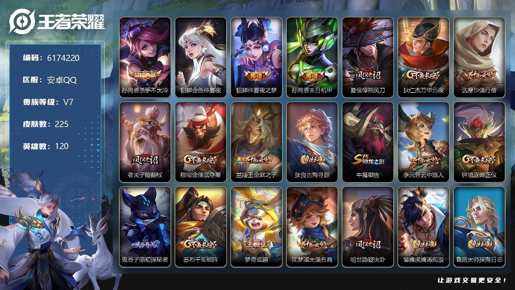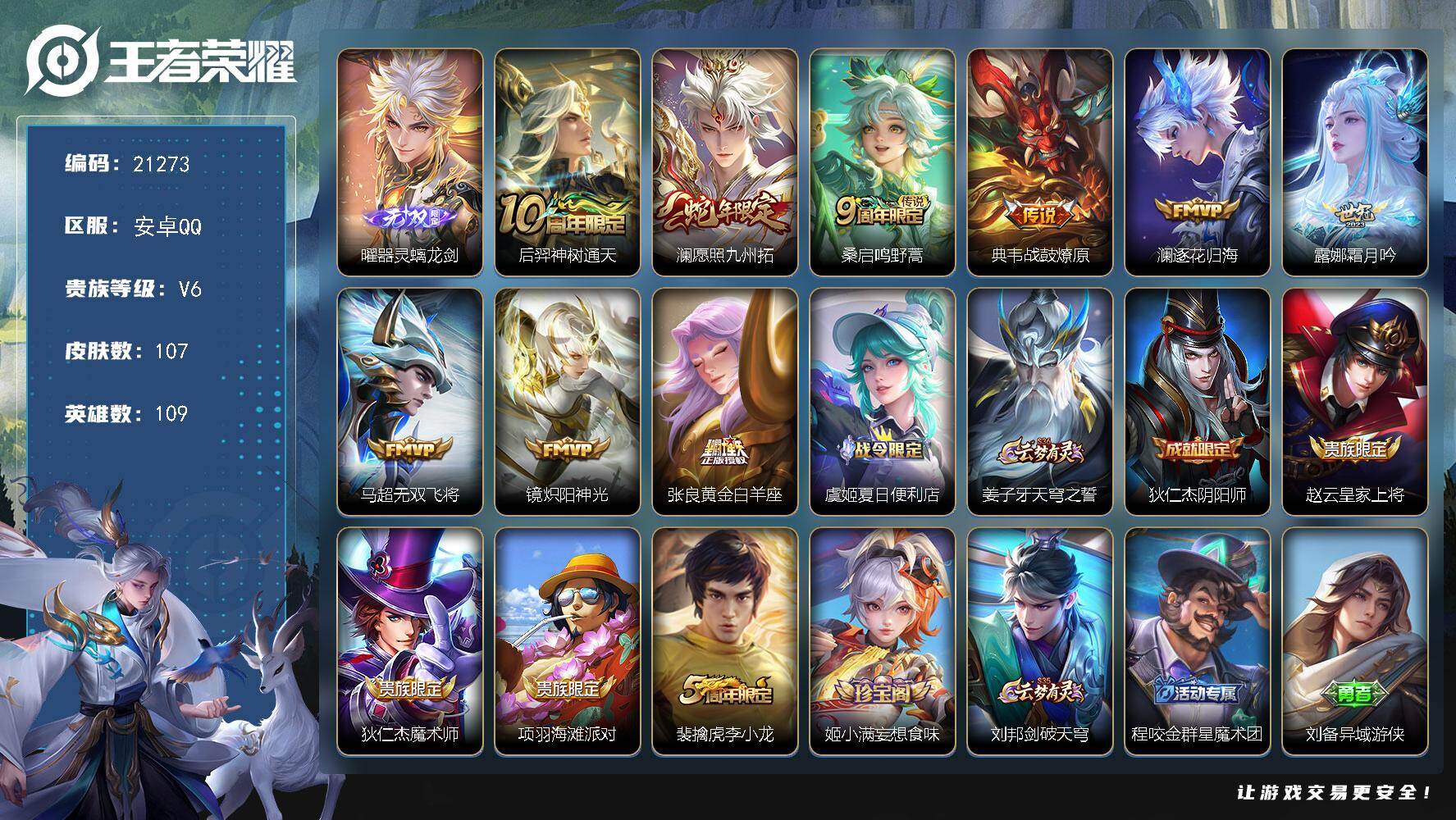 虞姬典藏/山海李信+马可/皮肤数量270印记总数17V7最强