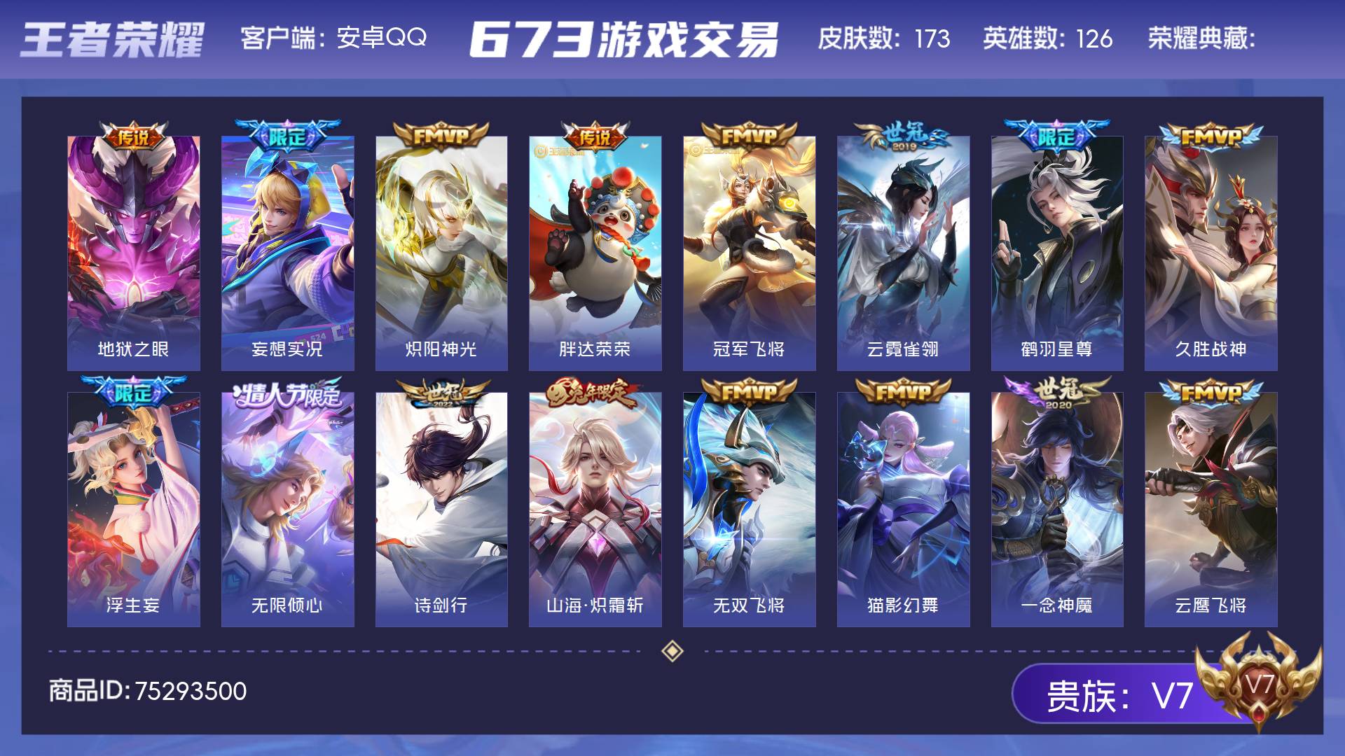 V7 皮肤173 英雄126 最强王者 传说16 其他皮肤163