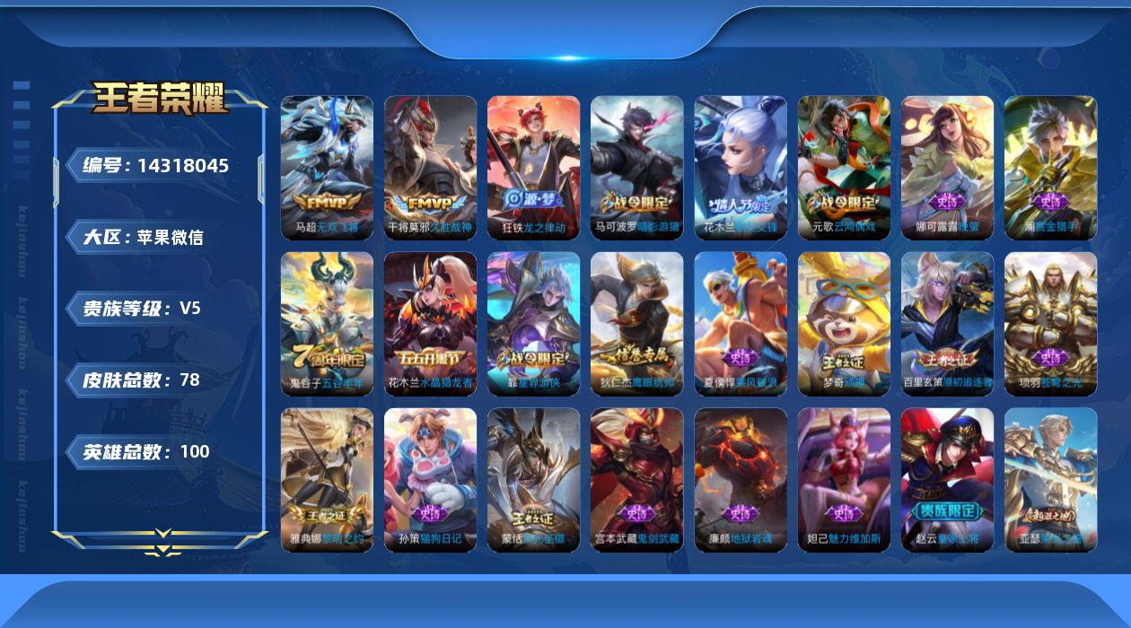 V5 皮肤62 英雄77 至圣王者 无双皮肤1 传说2 其他皮肤19