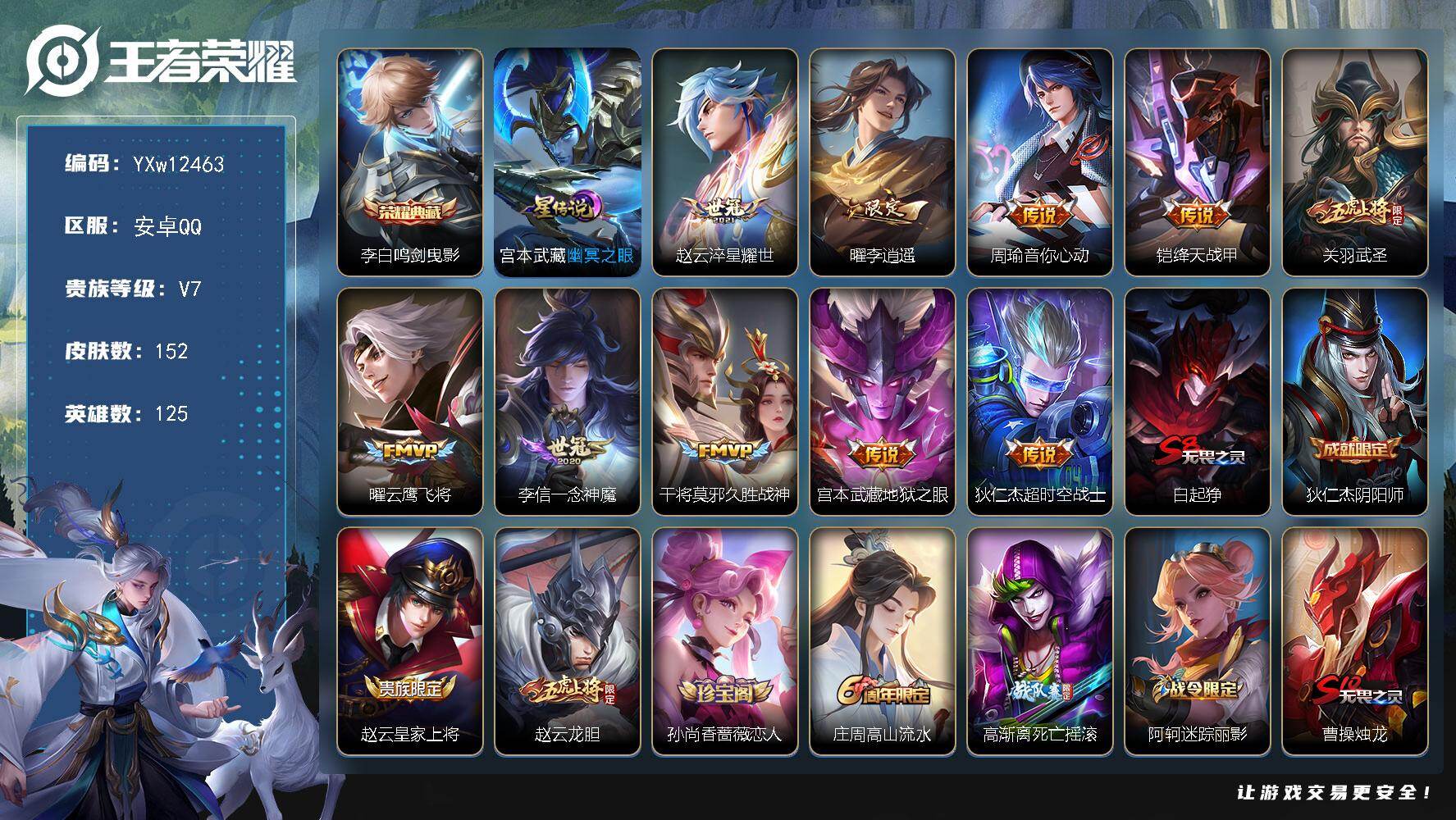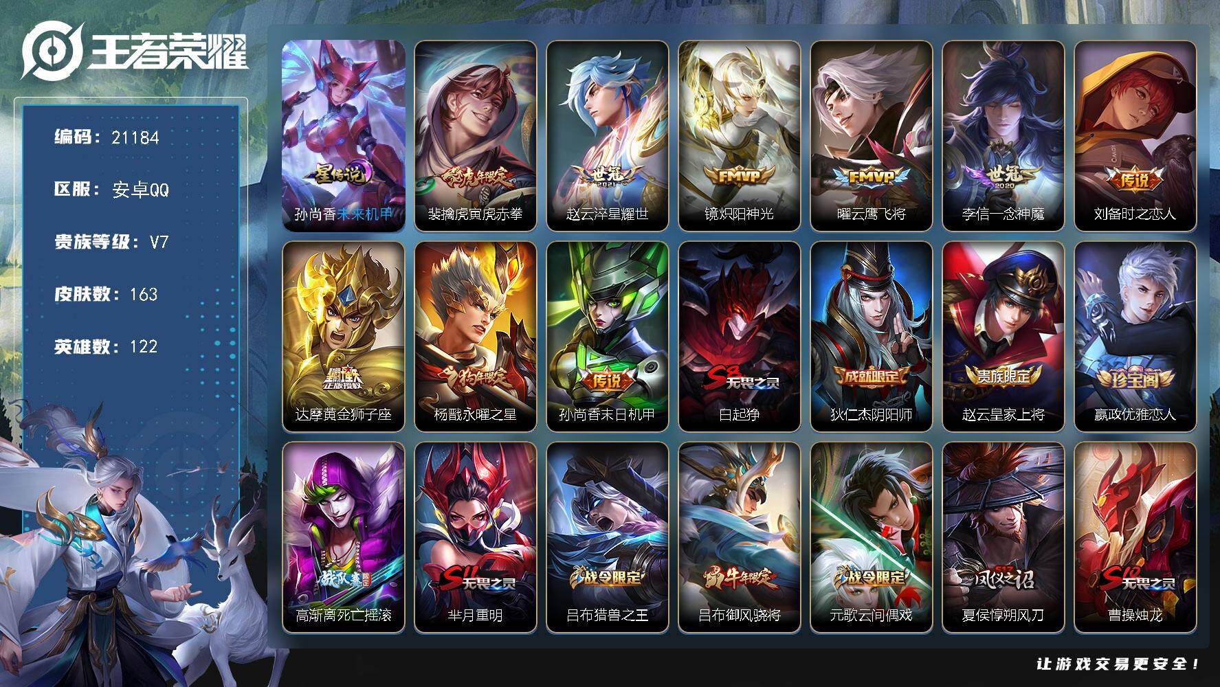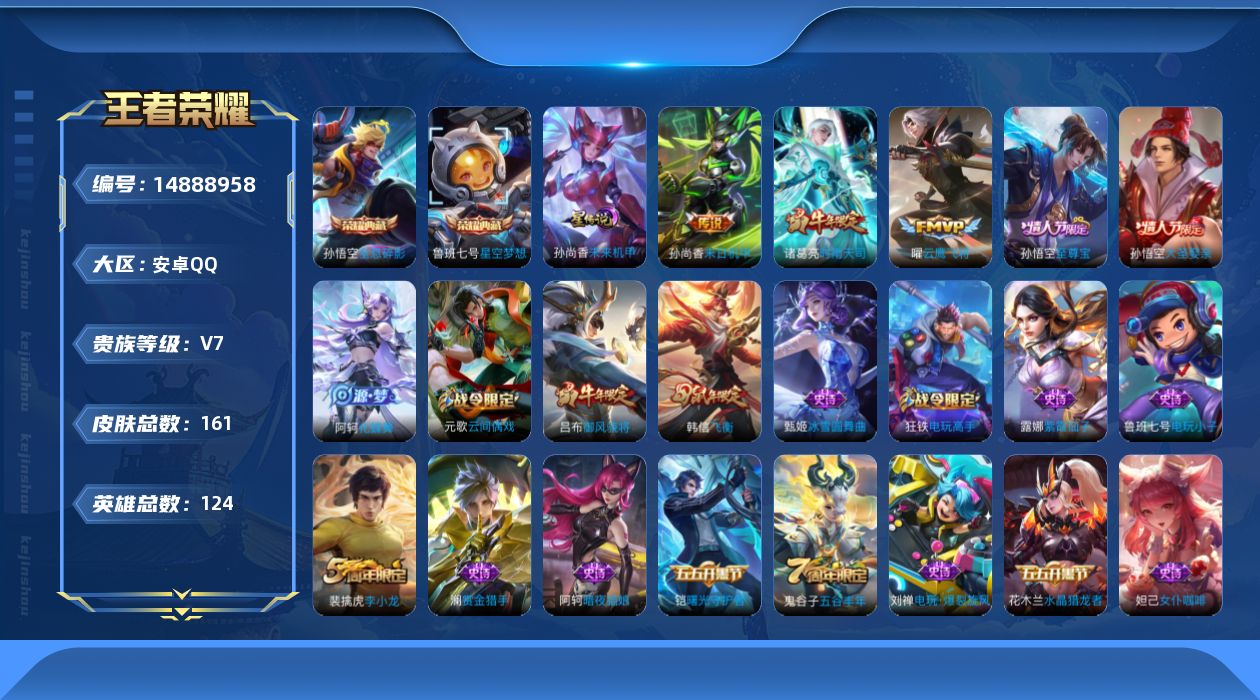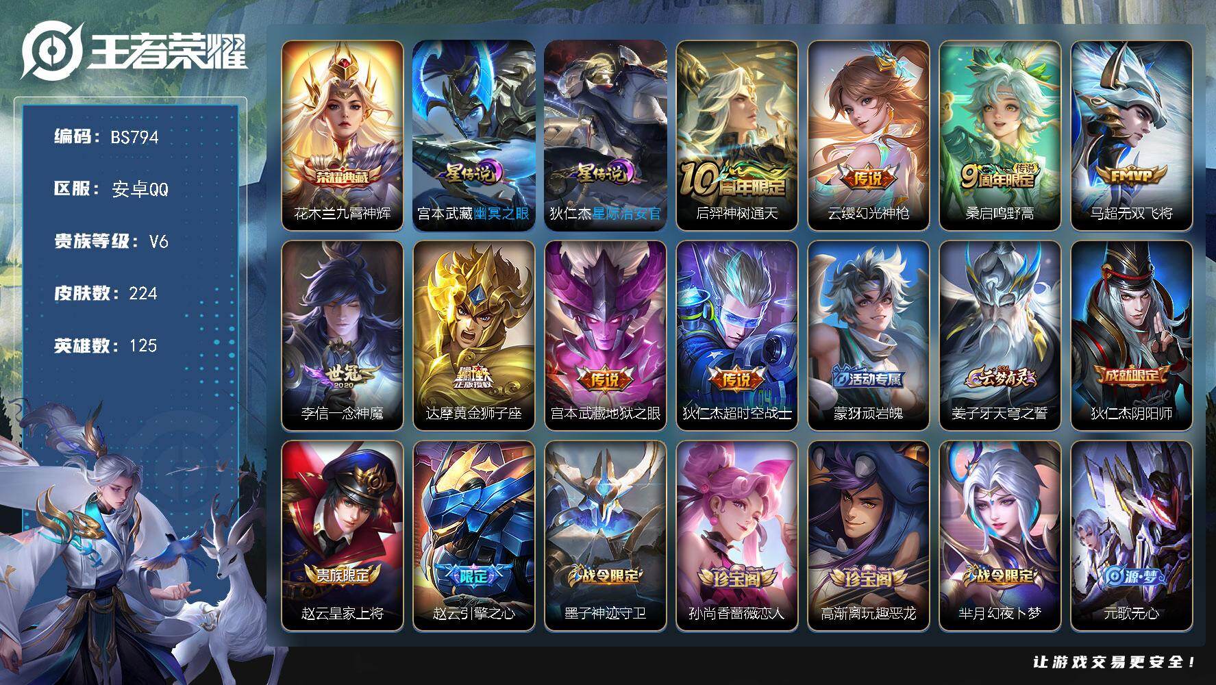 安卓Q-V6-永恒钻石II段位-125英雄-224皮肤-1典藏皮肤-8传说-5