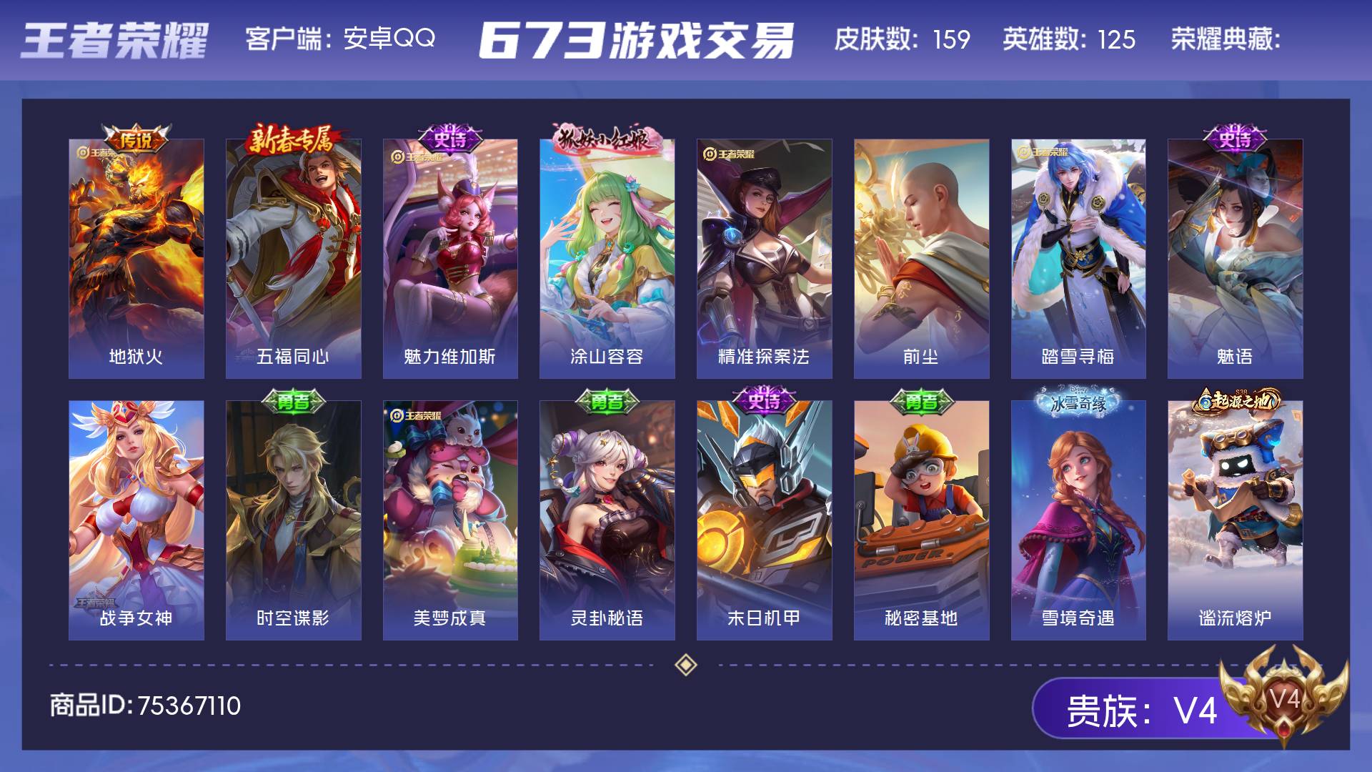 二四八九四零二_[王者荣耀]V22传说18史诗95皮肤永恒钻石II