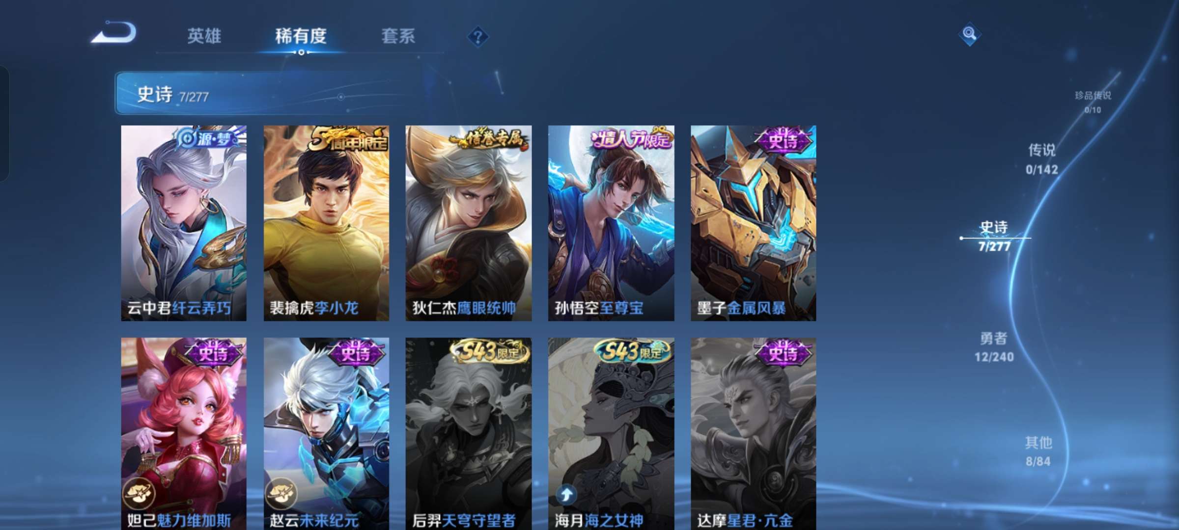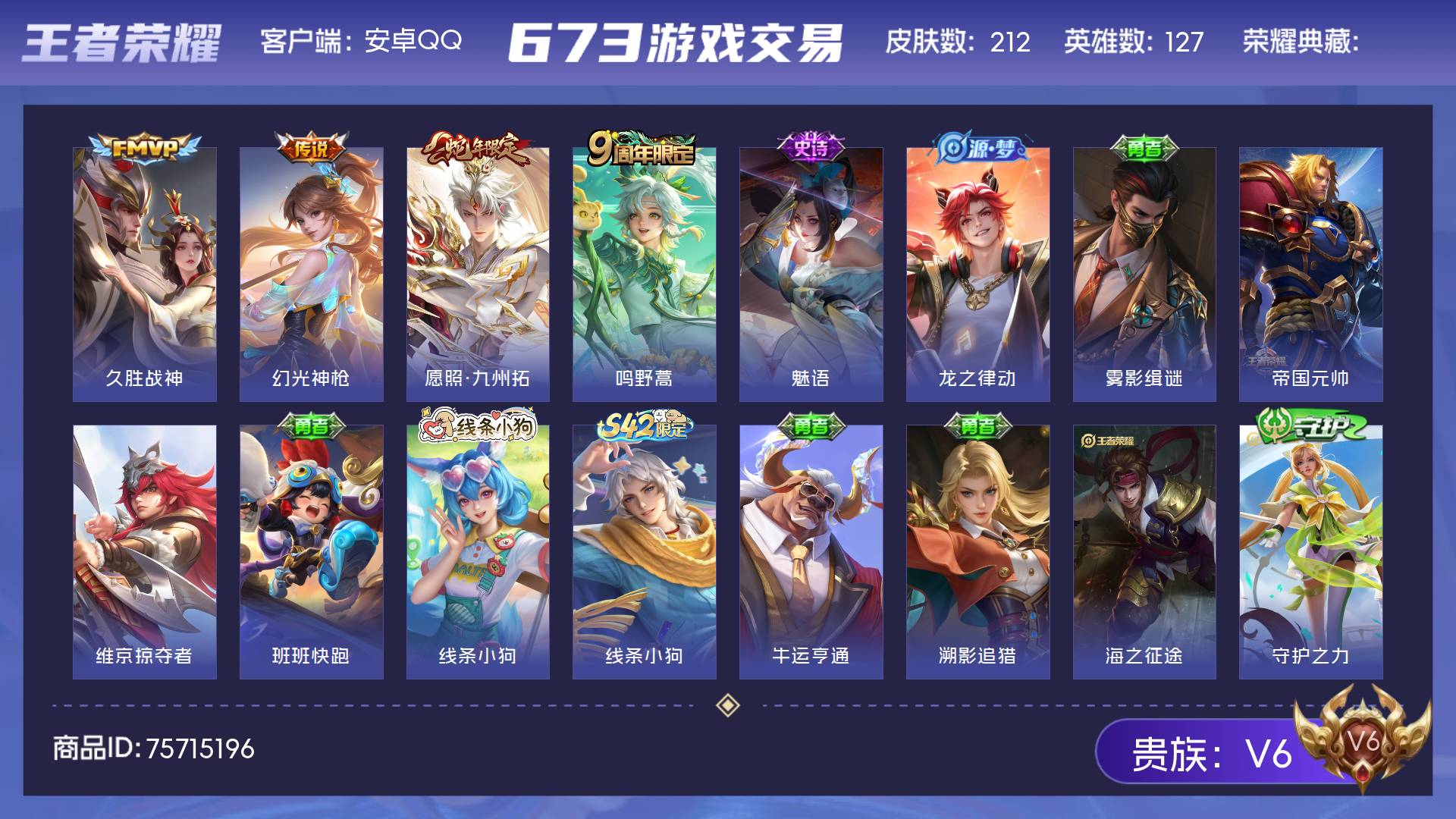 V6 皮肤212 英雄127 绝世王者 传说4 其他皮肤211
