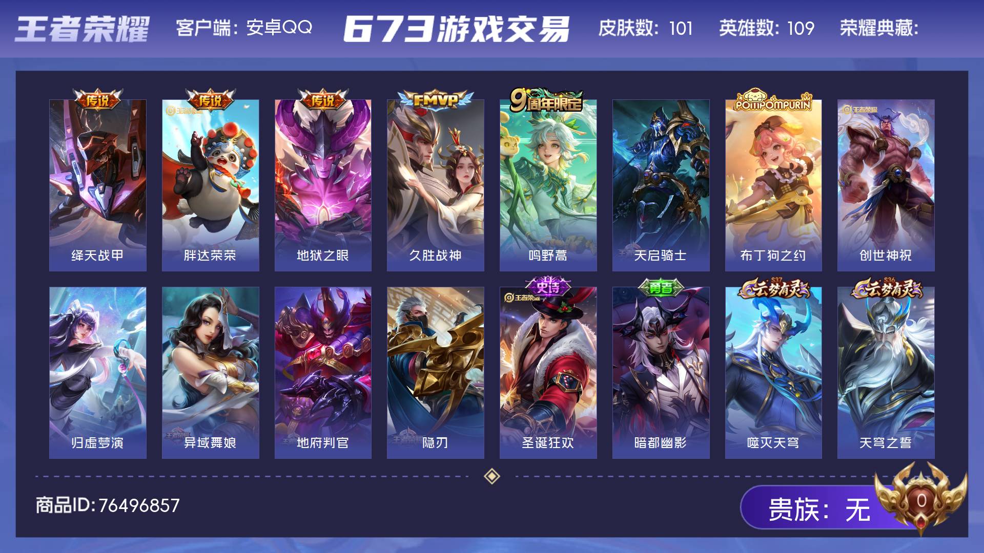 皮肤101 英雄109 永恒钻石 传说5-安卓QQ-