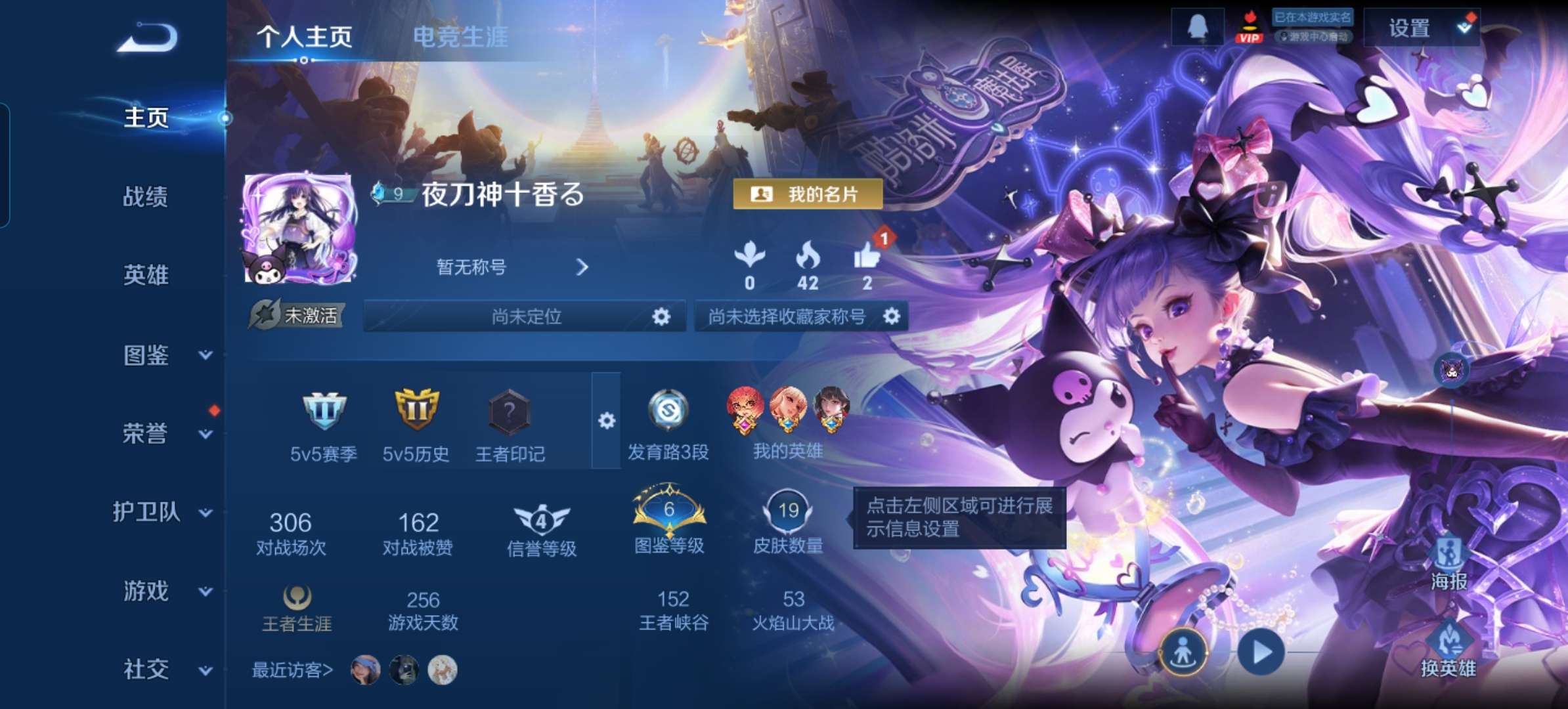 实名: 可修改 贵族等级: V4 英雄数: 102 皮肤数: 72 限定皮: