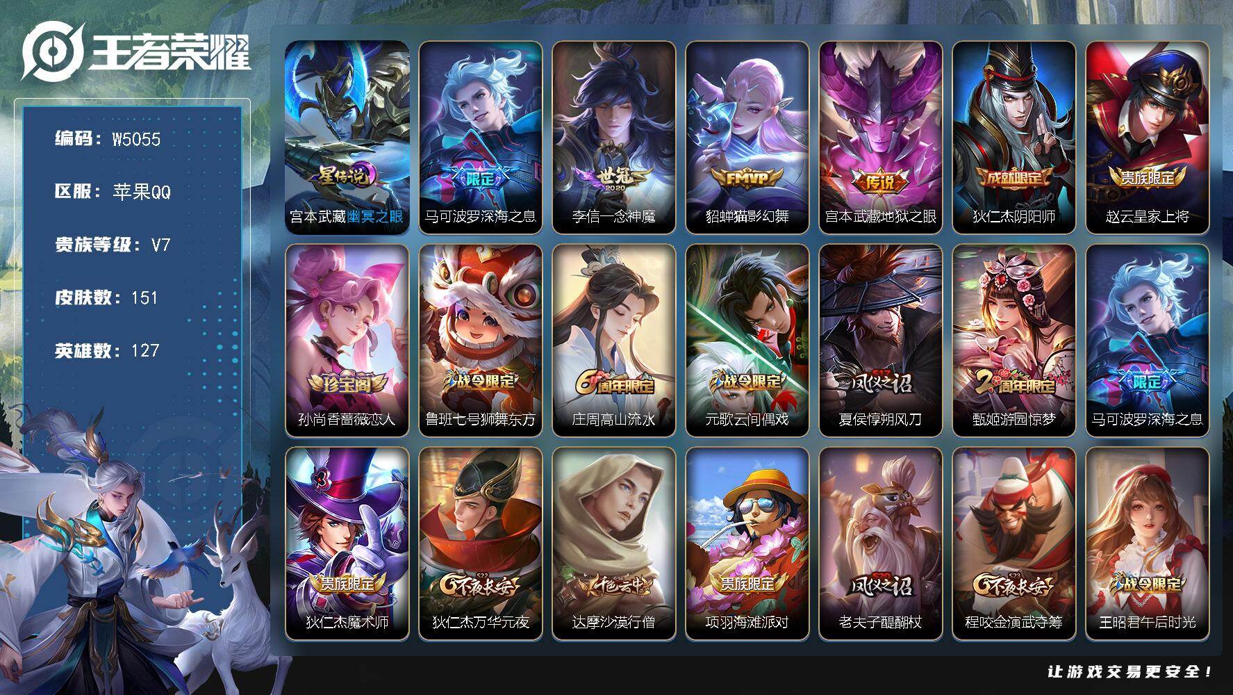 安卓Q区-无二次-贵7-127英雄-151皮肤-4传说-31史诗-44限定-1星元