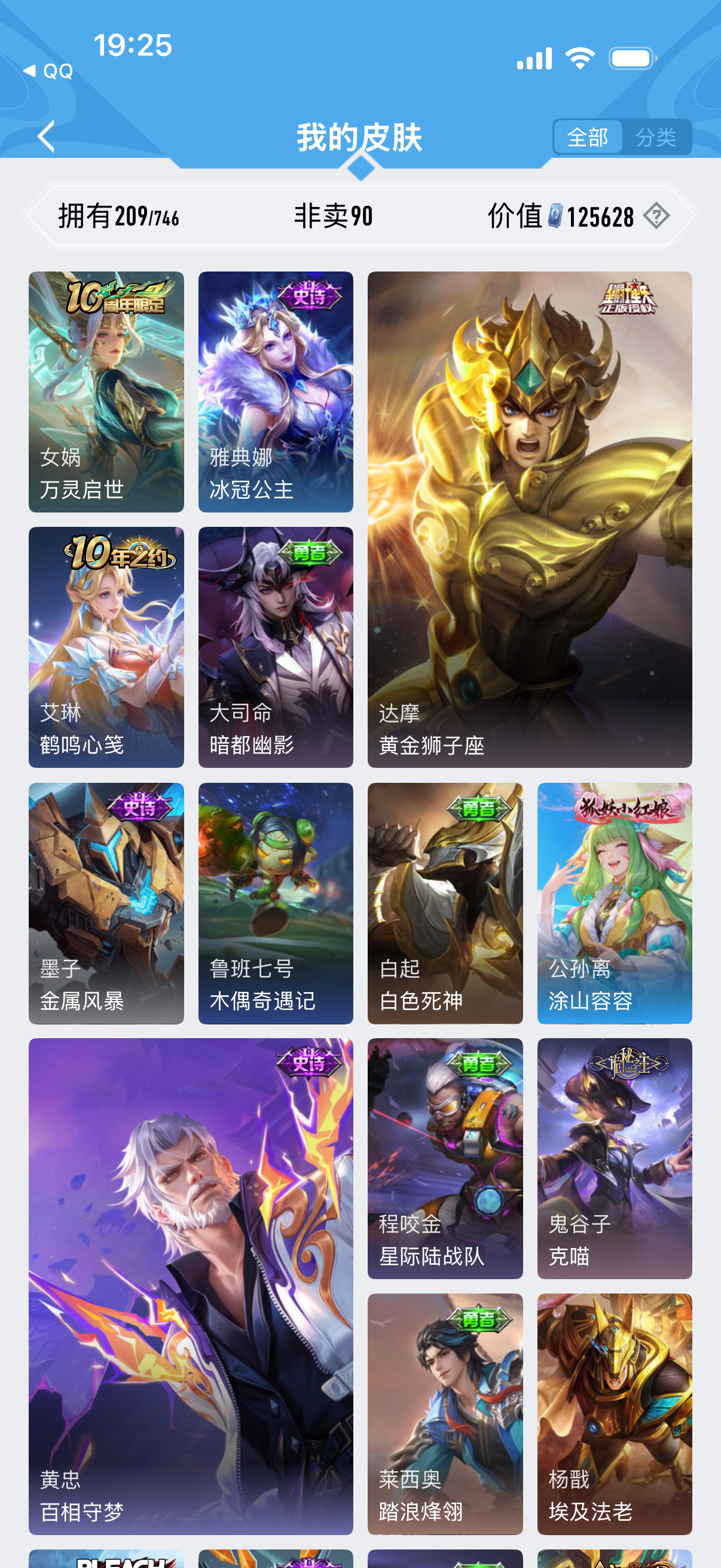 皮肤89 英雄113 至圣王者 传说5 其他皮肤33-自己看图决定买不买,自己喜欢就买