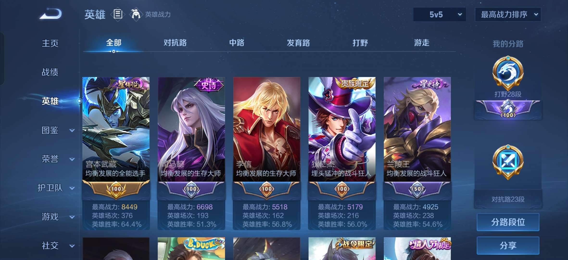 安卓Q-V6-最强王者段位-127英雄-258皮肤-1典藏皮肤-3传说-57史