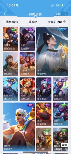 皮肤116 英雄116 非凡王者 传说5 其他皮肤36-安卓q哲想开心铭文基本全满