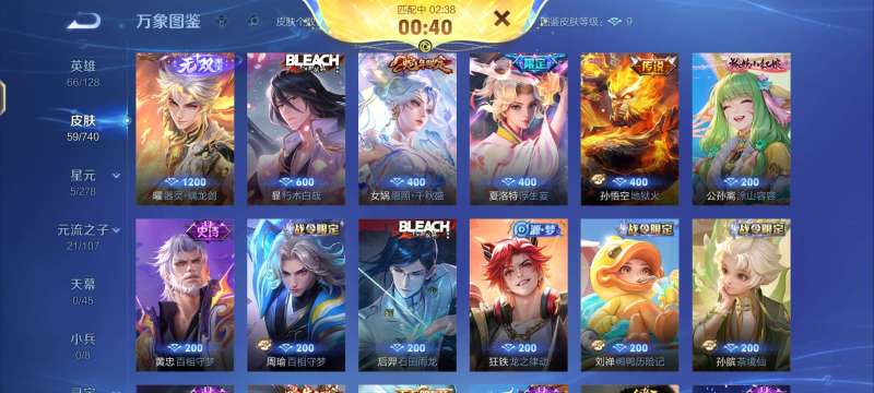 安卓微信-6传说-214皮肤-125英雄-荣耀黄金-C3WGJW号 贵族6 星元皮肤3 传说皮肤6 史诗皮肤52 皮肤数量214 皮肤价值:131024