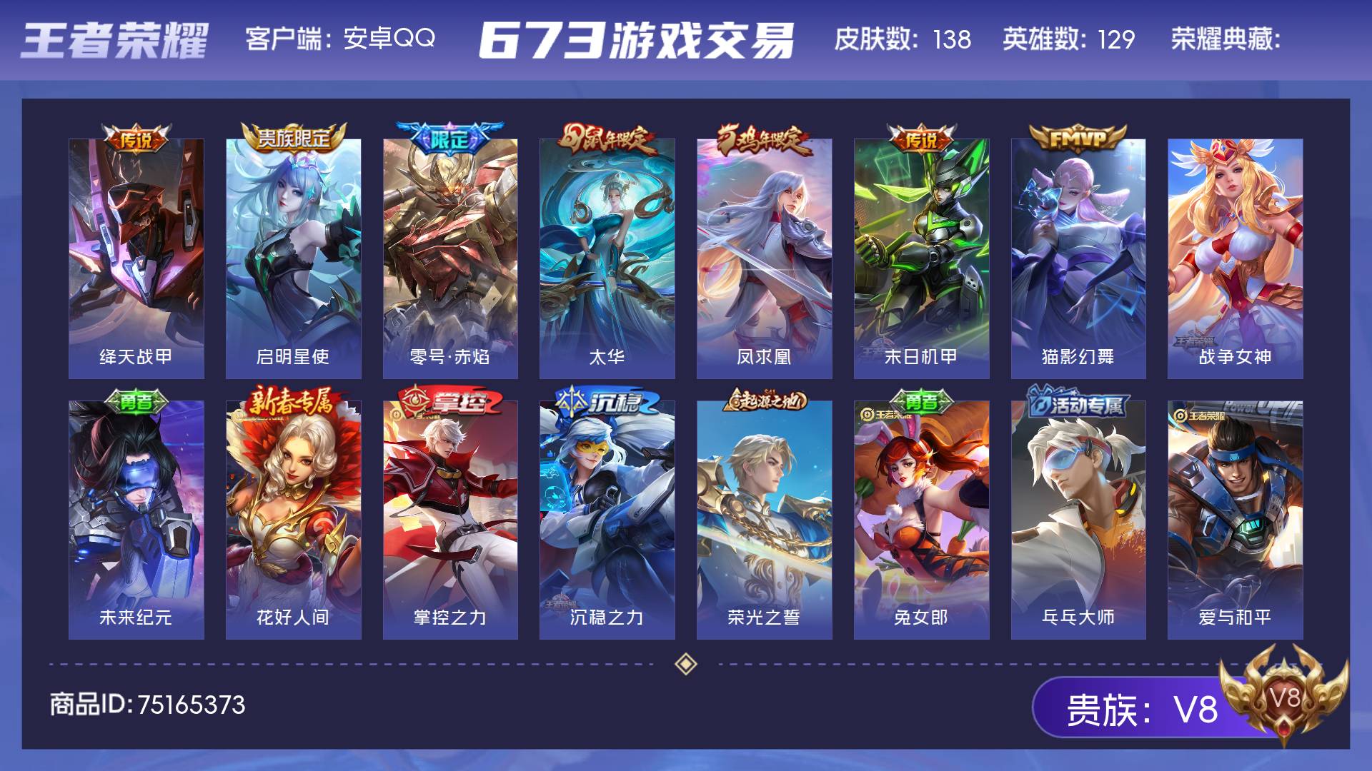 V8 皮肤138 英雄129 永恒钻石 传说7 其他皮肤136
