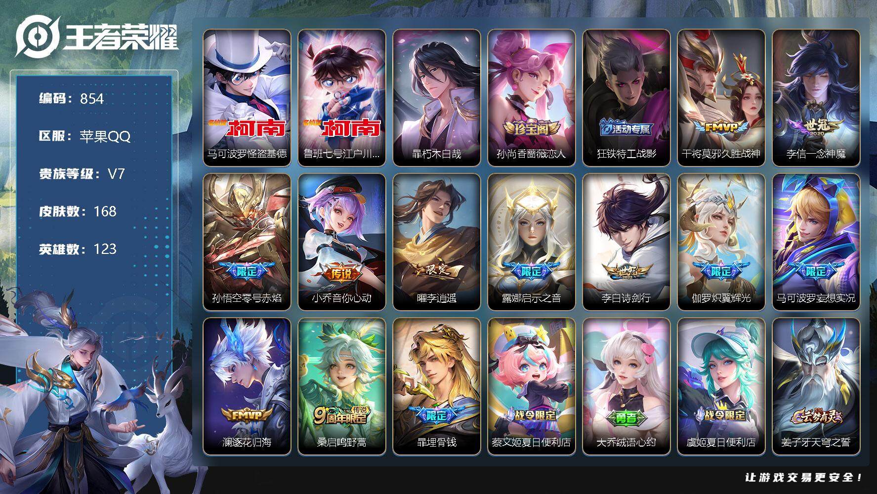 王者荣耀账号苹果Q-V7-最强王者段位-123英雄
