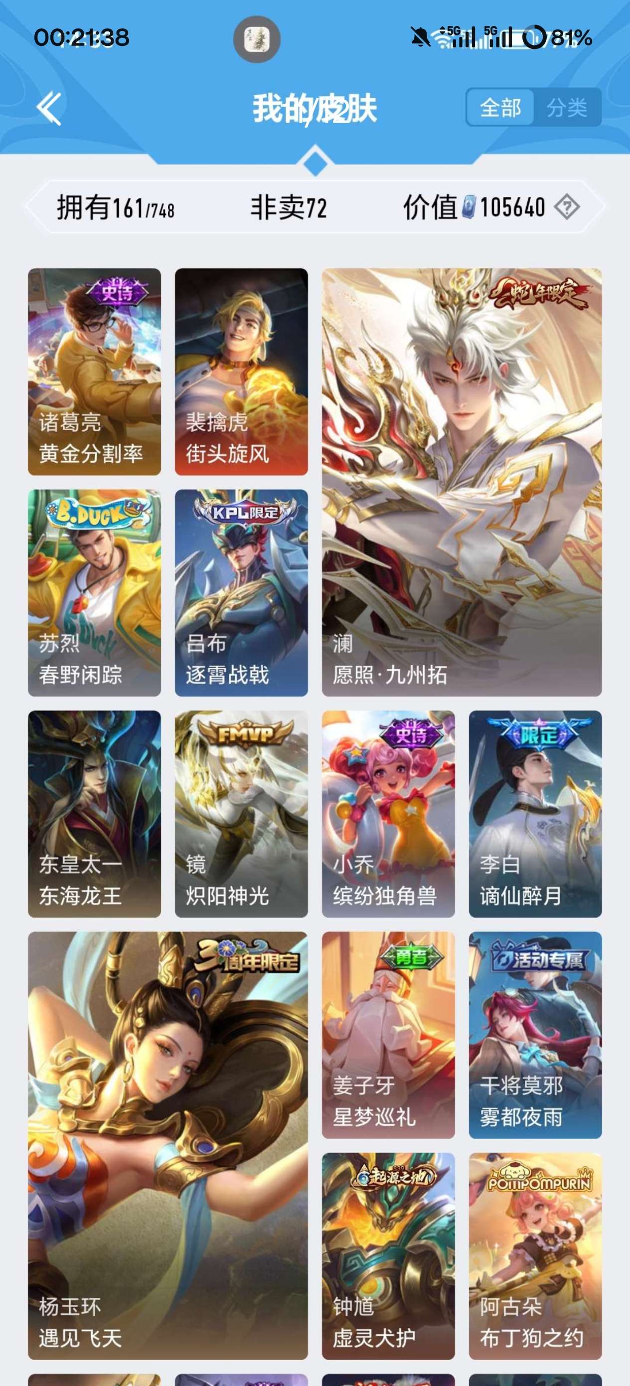 皮肤230 英雄126 永恒钻石 传说3 其他皮肤101-没时间玩了上班了,,