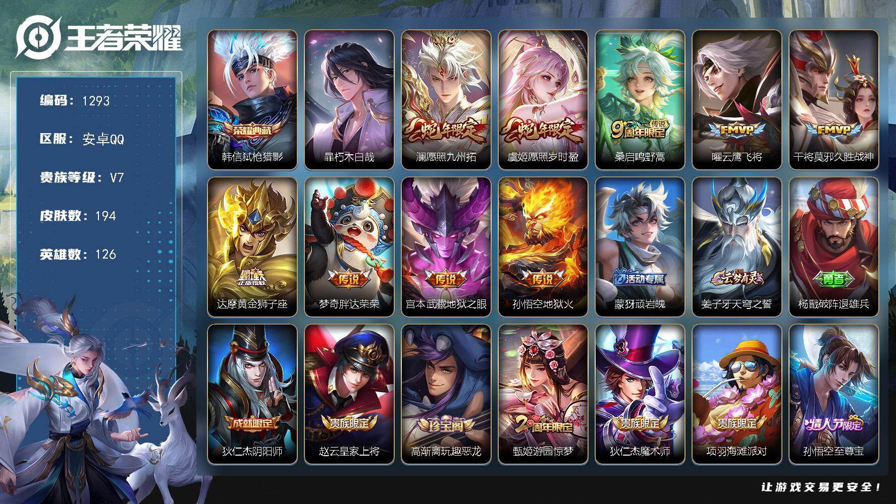 安卓Q-V6-最强王者段位-126英雄-211皮肤-11传说-52史诗【英雄