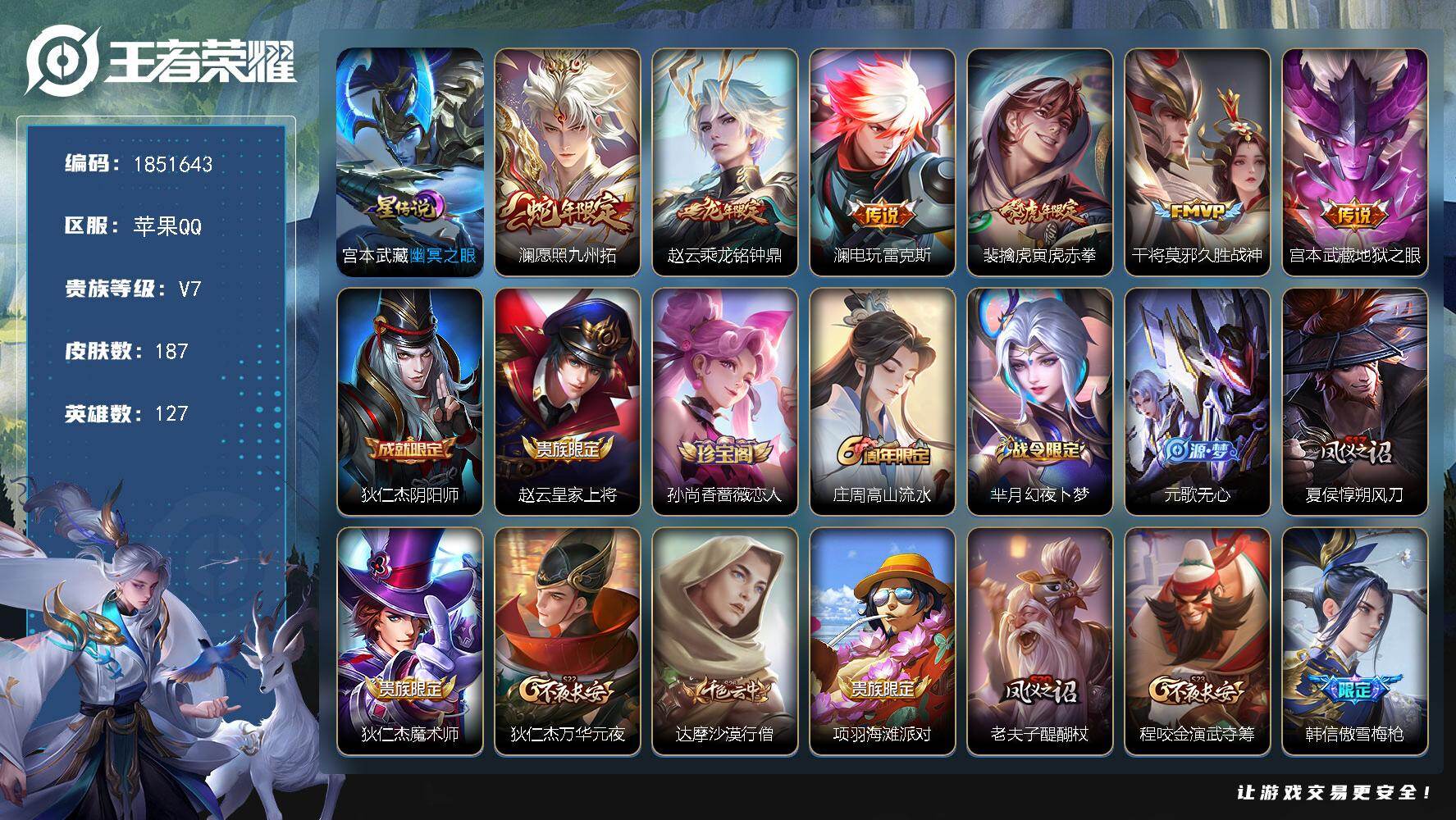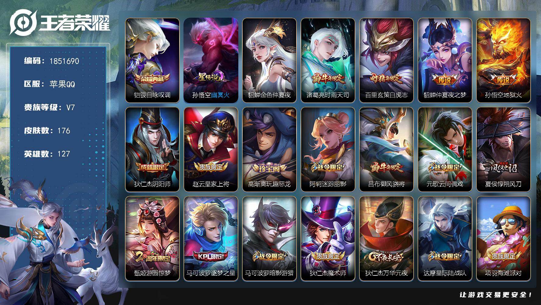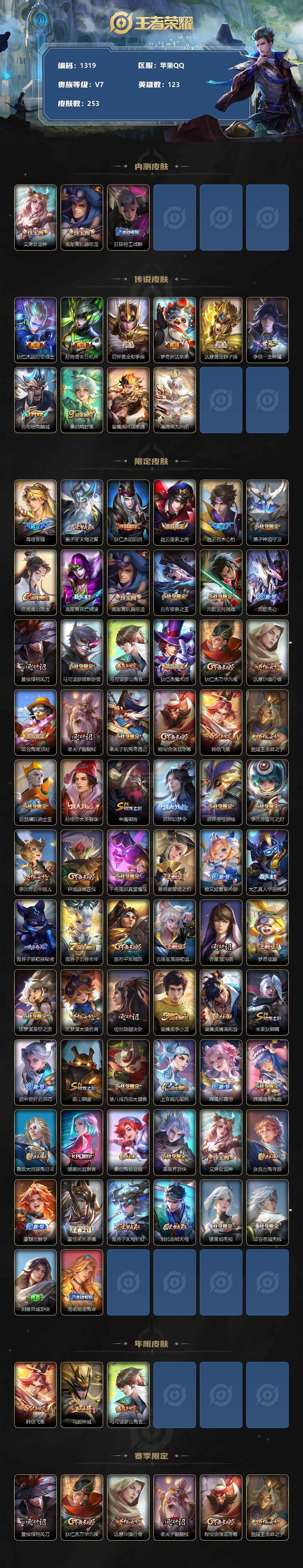 【商品标题】:苹果Q-V7-永恒钻石I段位-123英雄-253皮肤-0典藏-0
