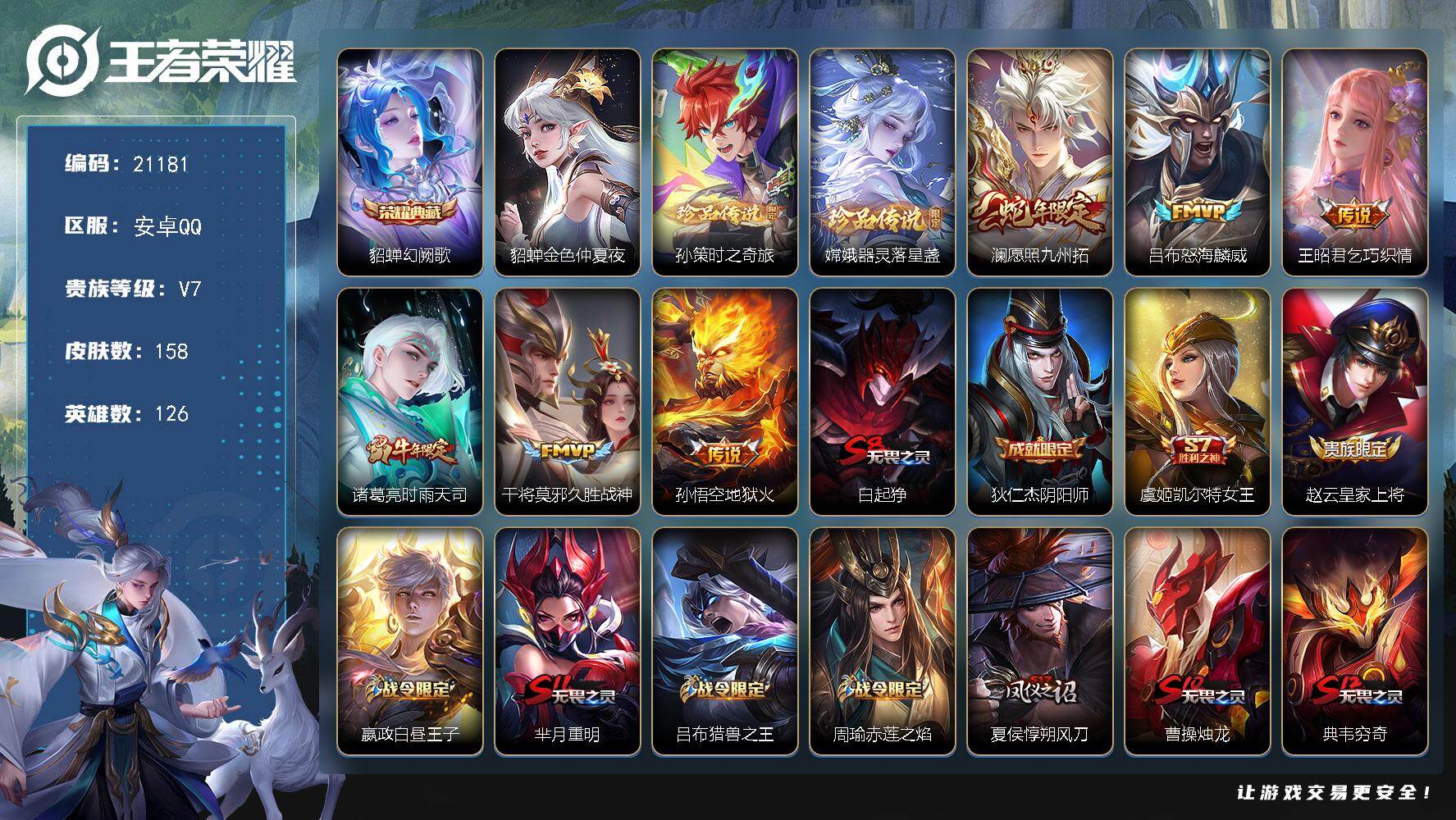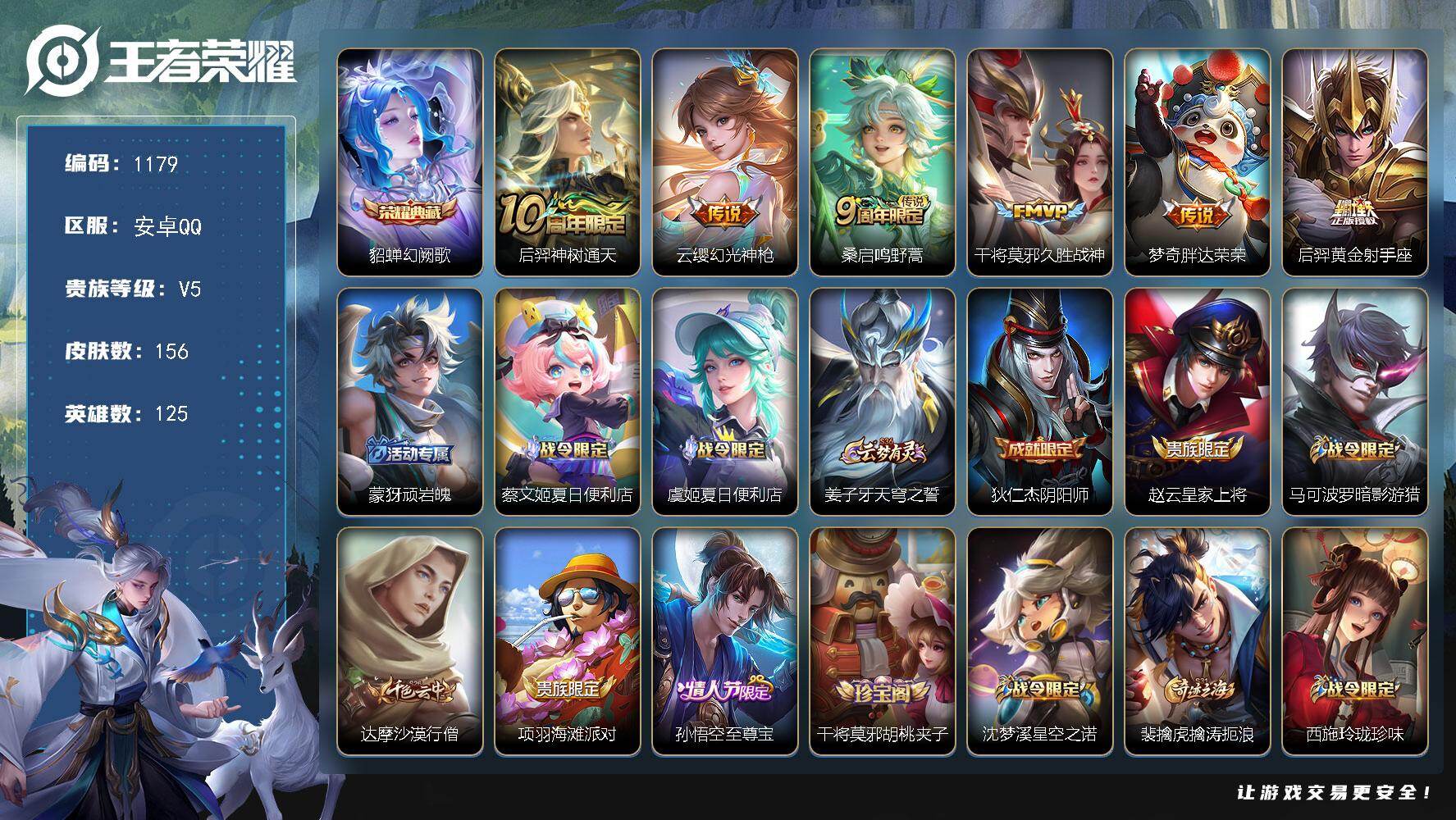 安卓Q-V5-125英雄-156皮肤-1典藏皮肤-6传说-43史诗【荣耀典藏