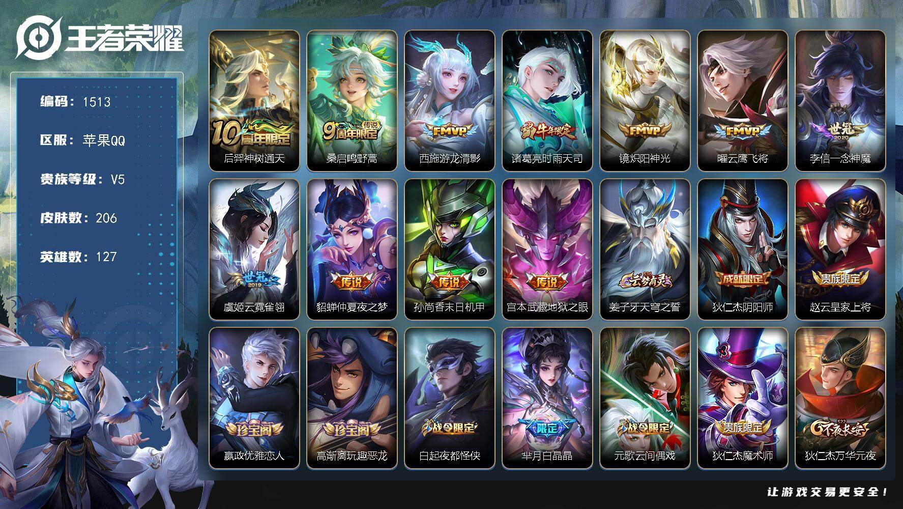 【206皮11传说 游龙清影 时雨天司 炽阳神光 云鹰飞将 】苹果Q-V5-最