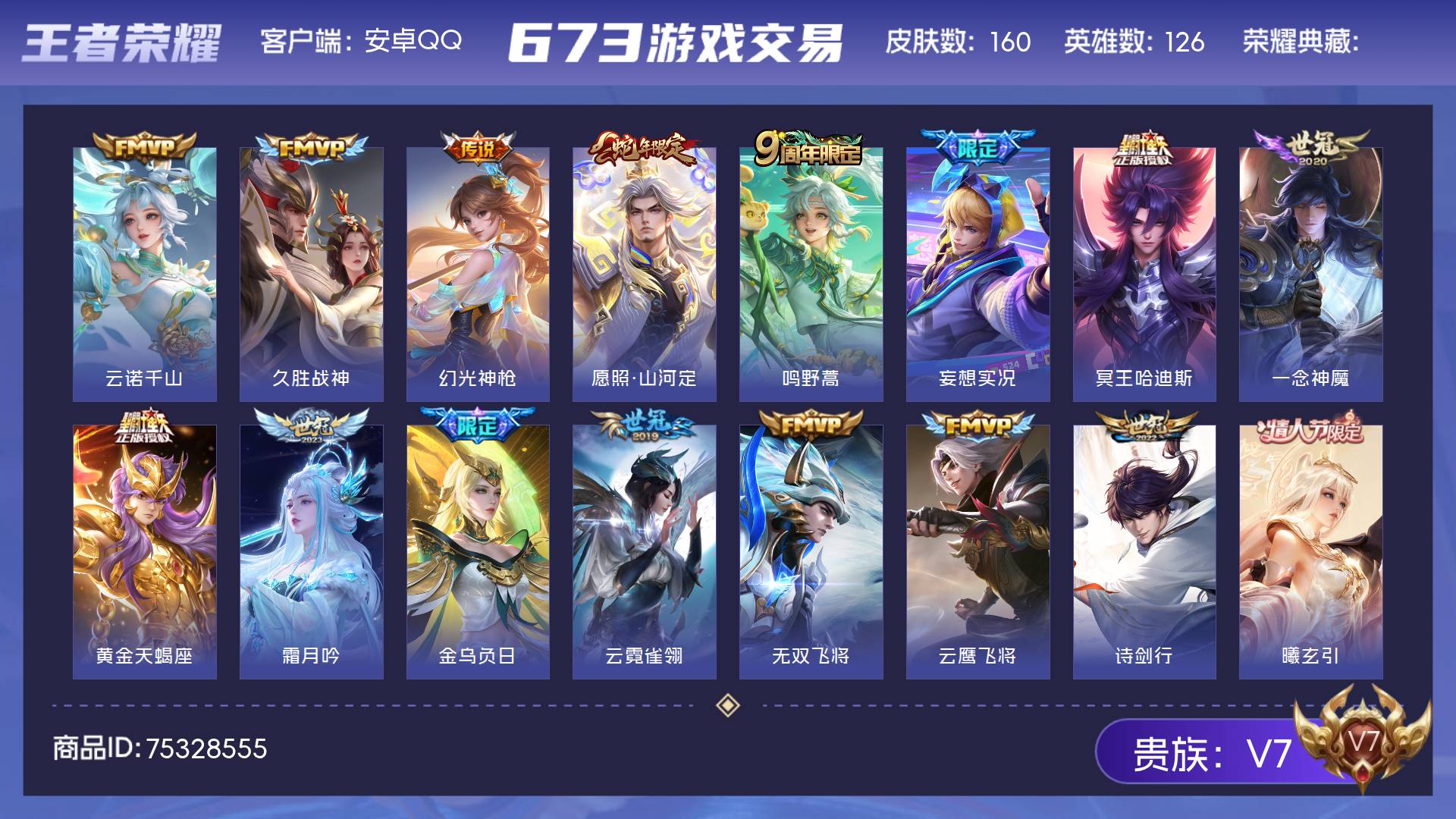 V7 皮肤160 英雄126 最强王者 传说19 其他皮肤147