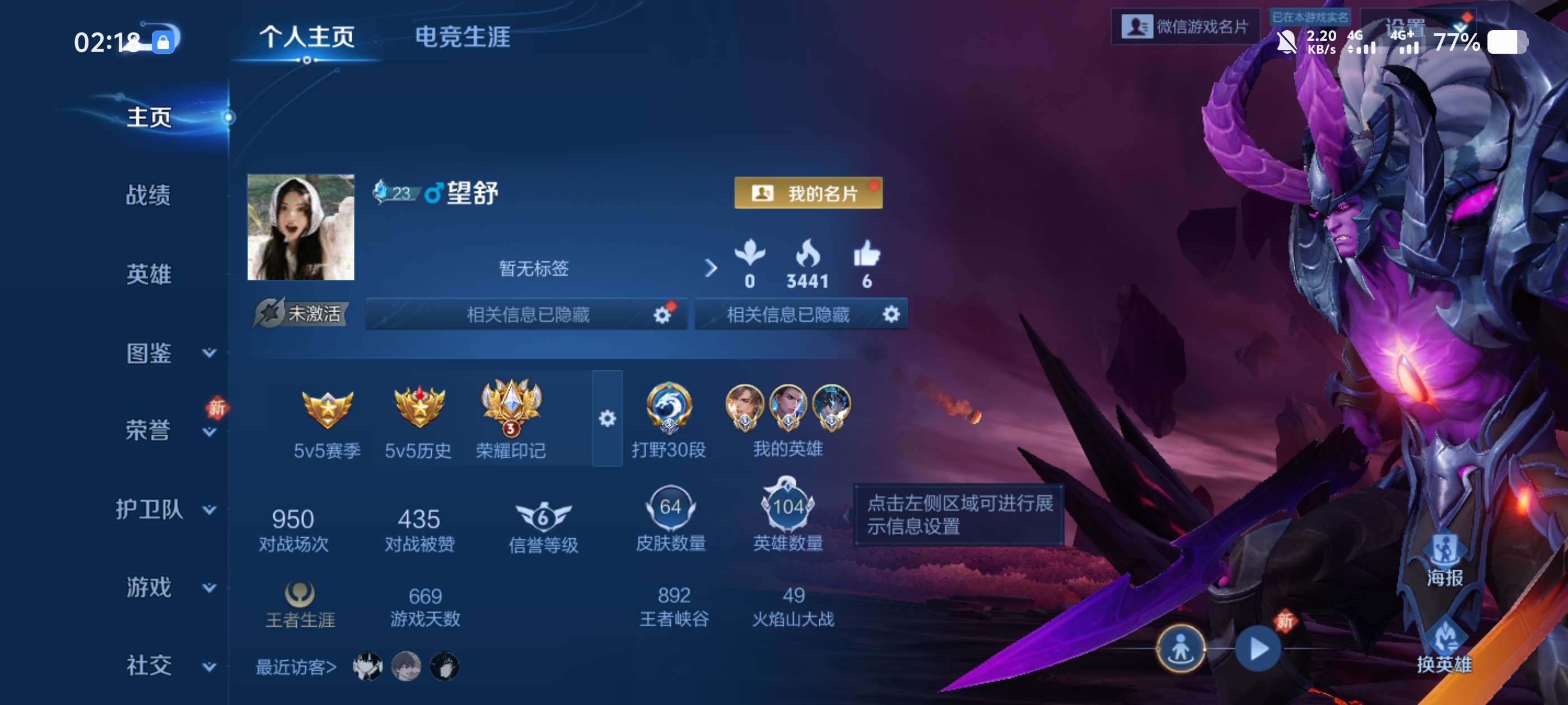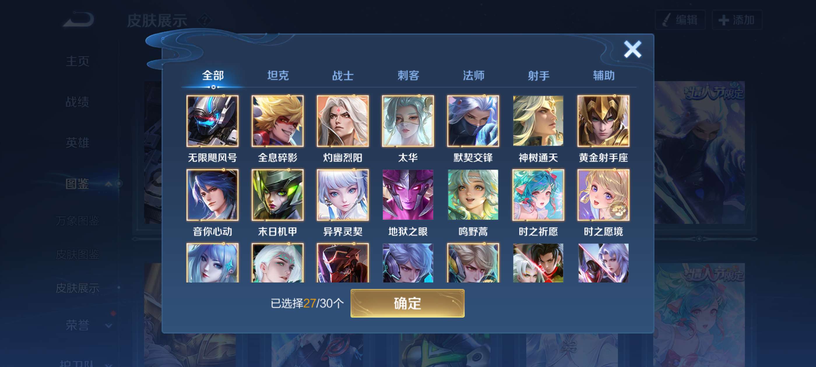韩城+木兰典藏/山海马可/飞衡皮肤数量268印记总数15V7