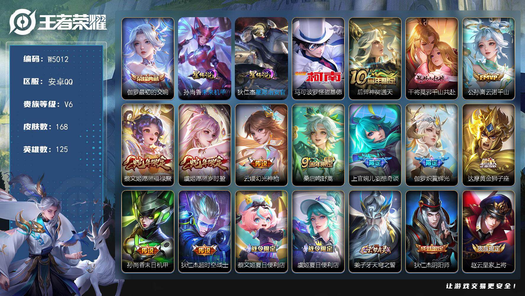 安卓QQ-1传说-105皮肤-125英雄-荣耀王者-适合女生的号适合女生的号