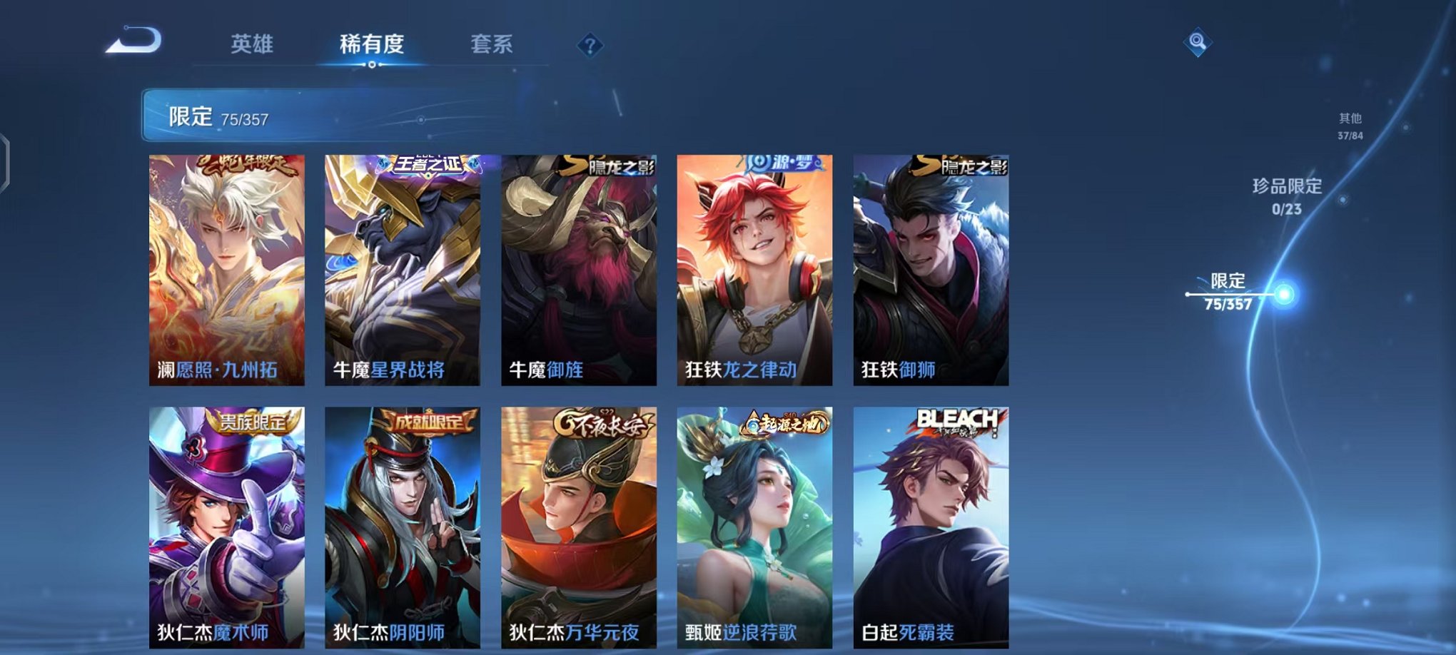 V7 1典藏 10传说 126英雄 175皮肤 可修改实名 【稀有英雄】大司命