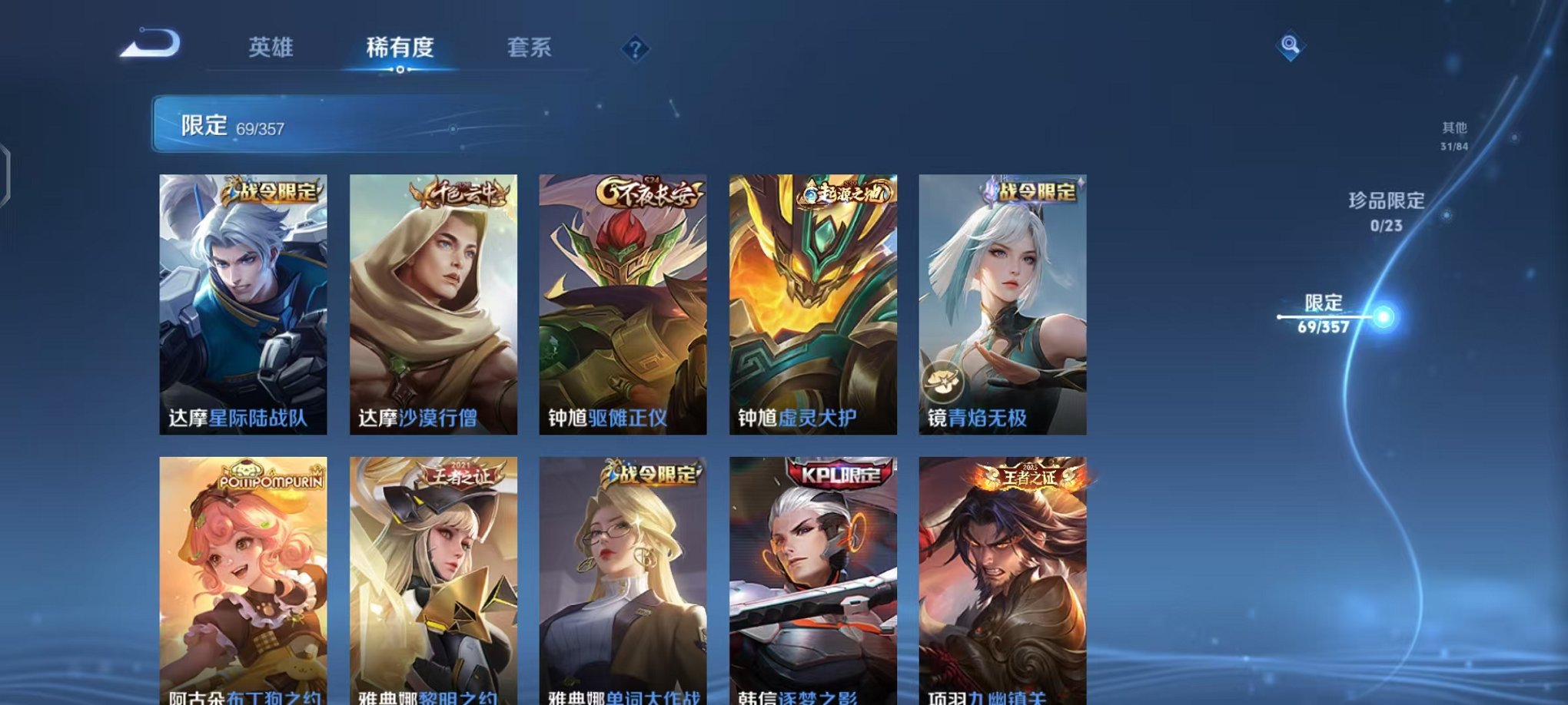 安卓QQ 皮肤261 英雄125 典藏1 传说6 其他皮肤83 最强王者-