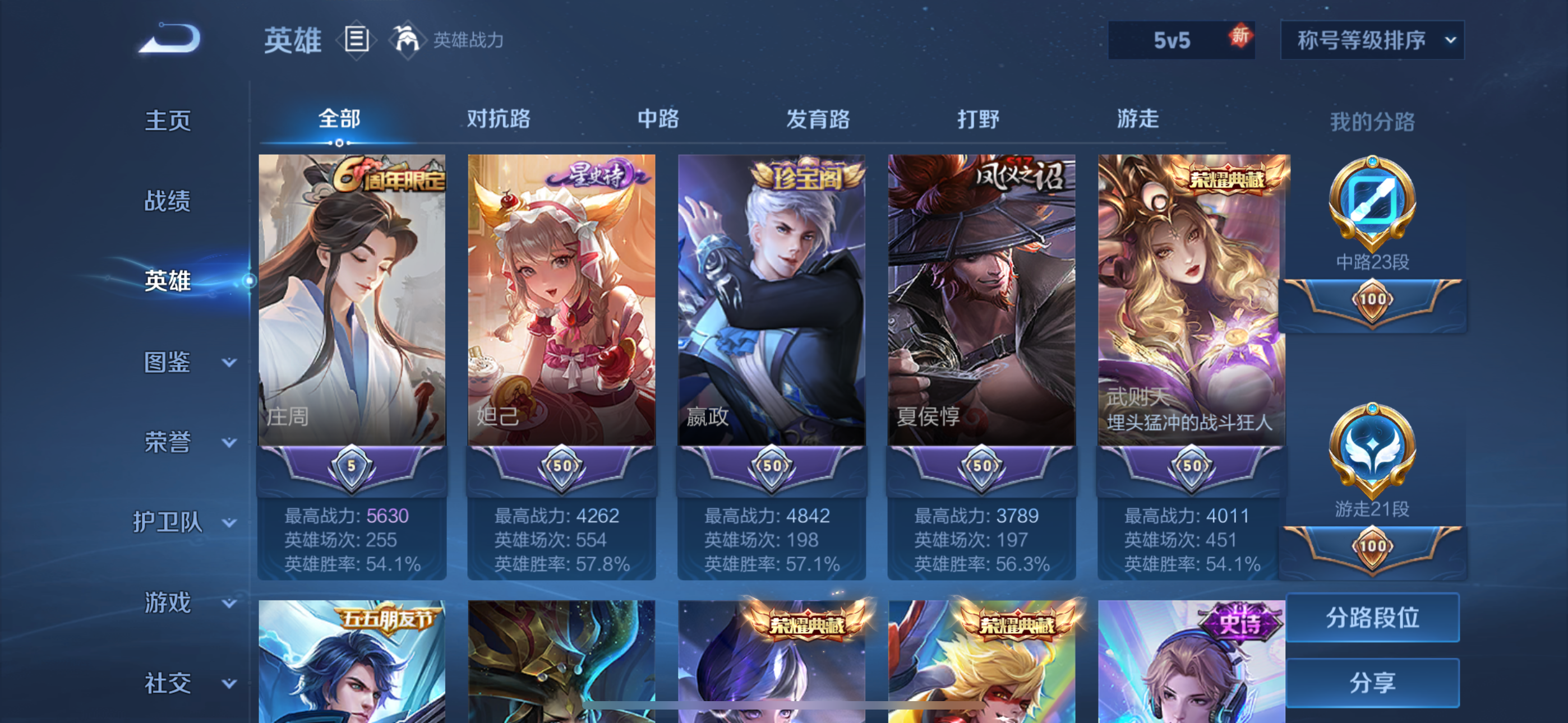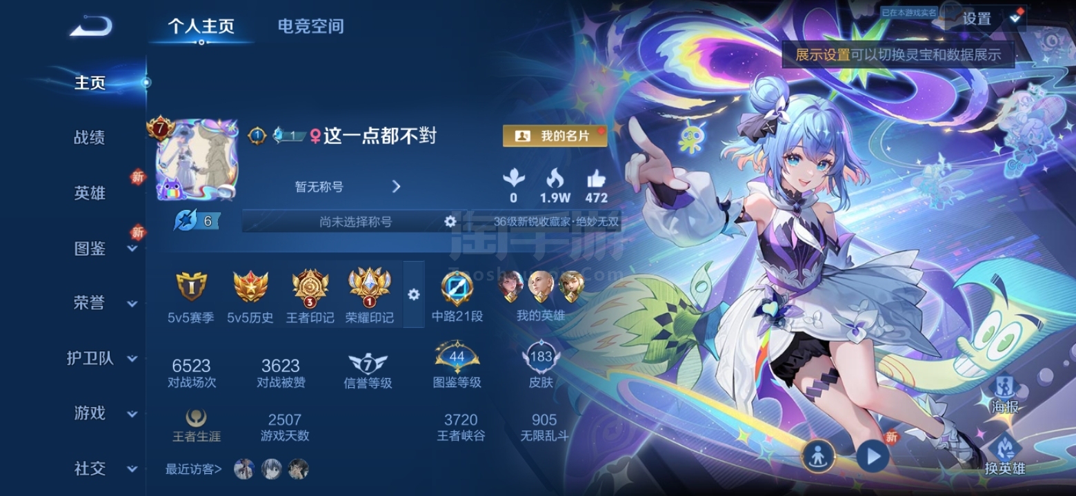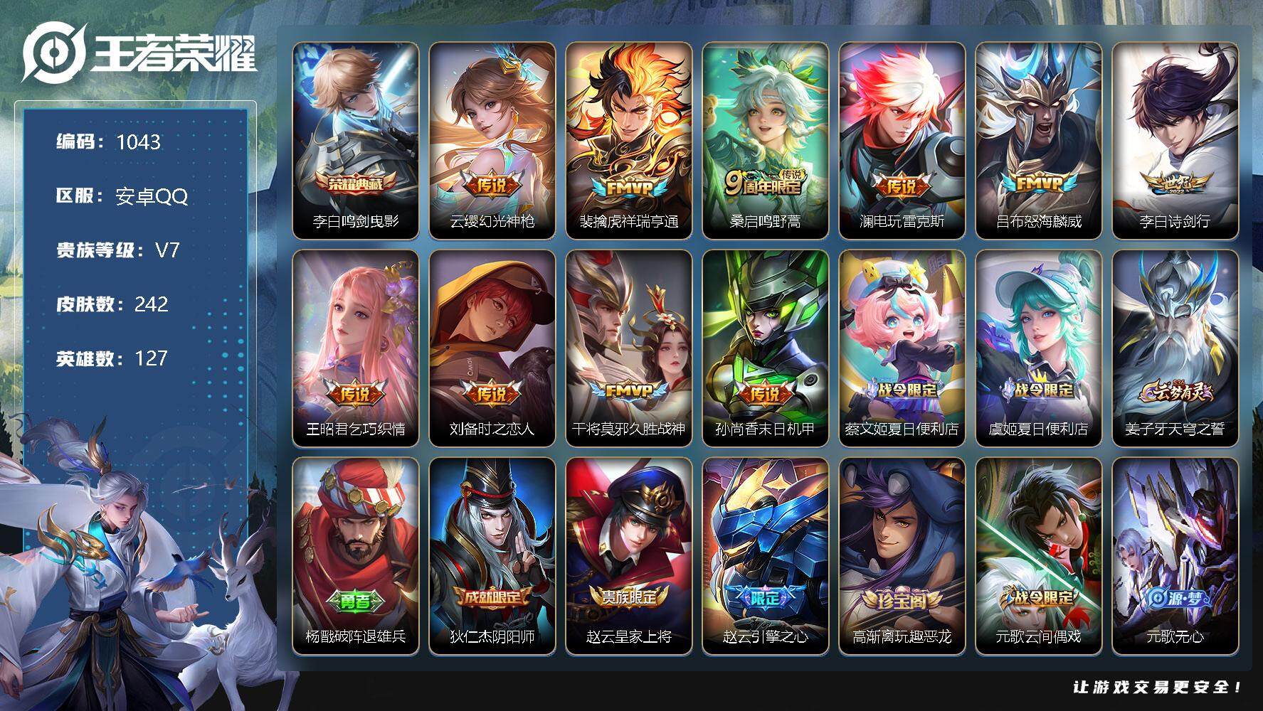 安卓Q-V7-至尊星耀I段位-127英雄-242皮肤-1典藏-0珍品无双-0无
