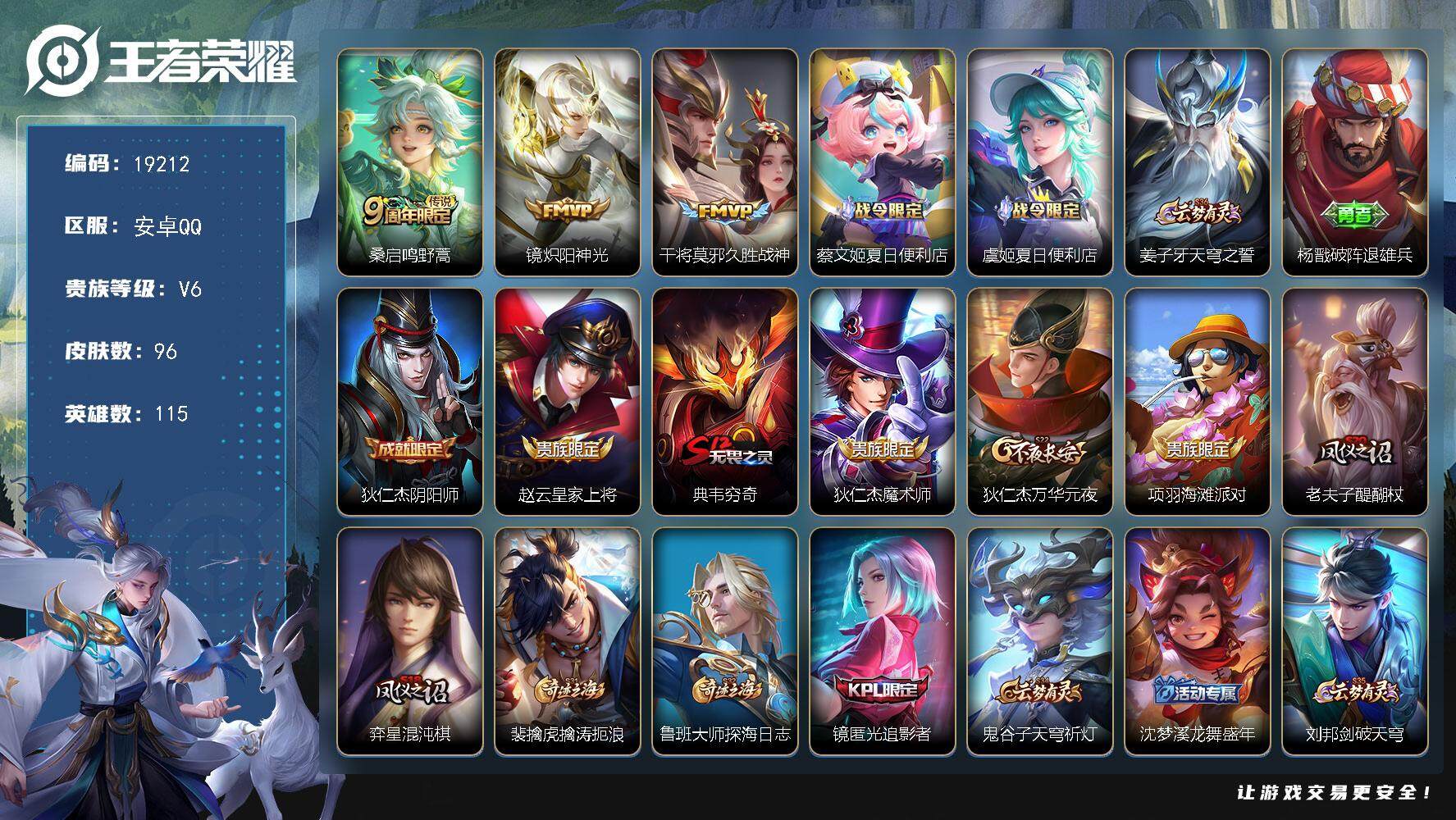 【商品标题】:安卓Q-V7-荣耀黄金IV段位-113英雄-112皮肤-可二次实名贵7