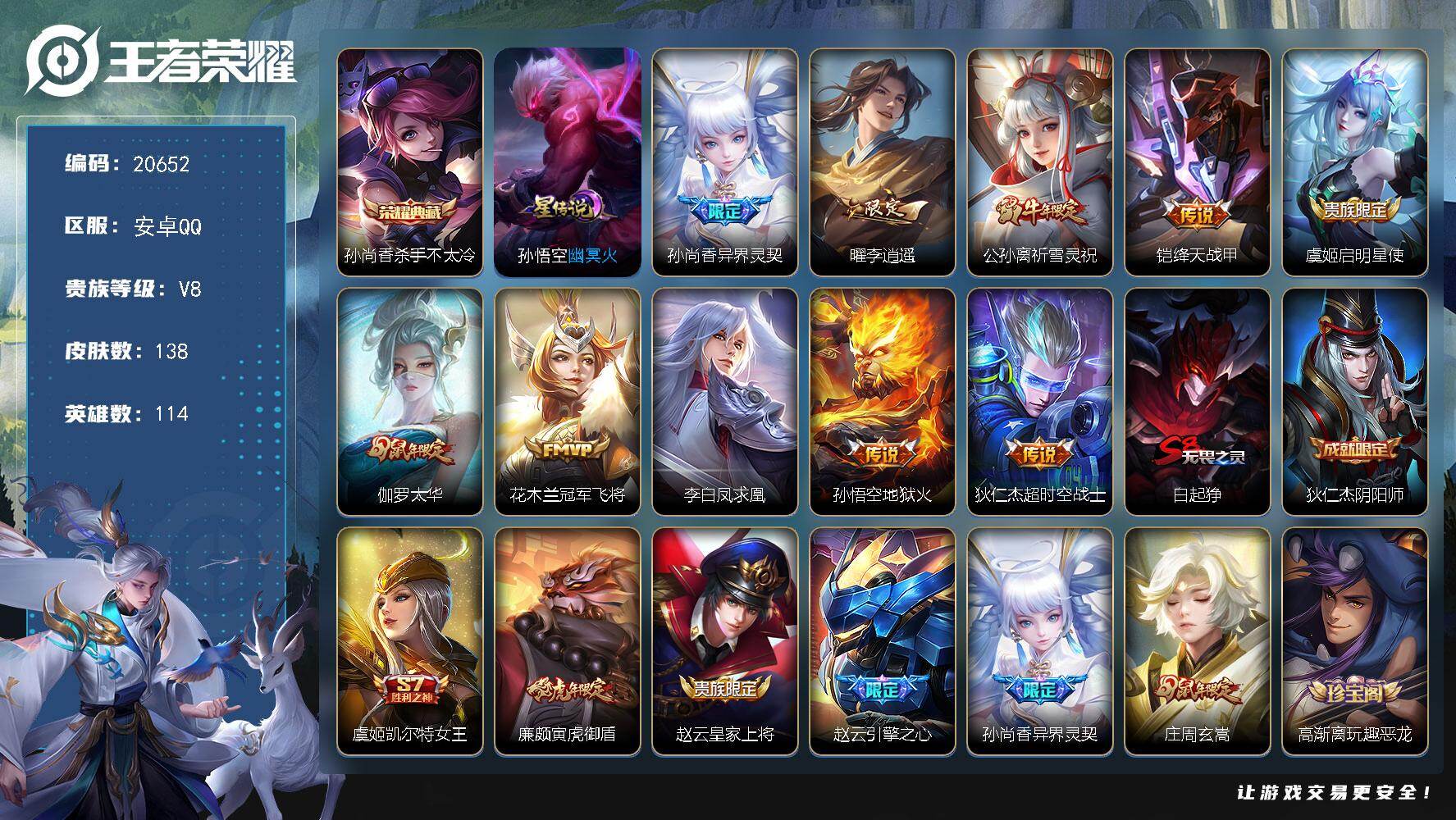 【16传说240皮肤1星元1珍品可秒换绑】安卓QQ-126
