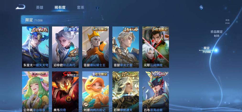 绝世王者-126英雄-173皮肤-1典藏-1珍品传说-7传说-45史诗